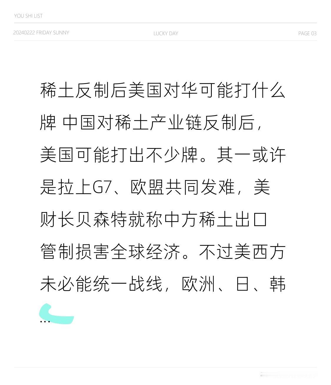 稀土反制后美国对华可能打什么牌中国对稀土产业链反制后,美国可能打出不少牌。其一