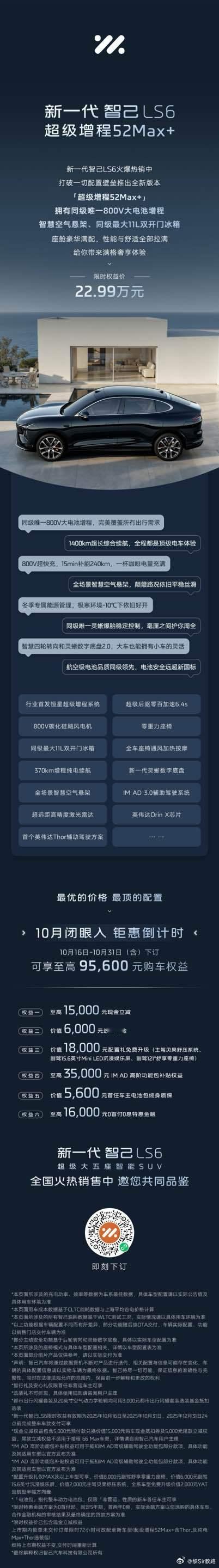 爆款再加码!新一代智己LS6推出超级增程52 Max+版,限时权益价22.99万元