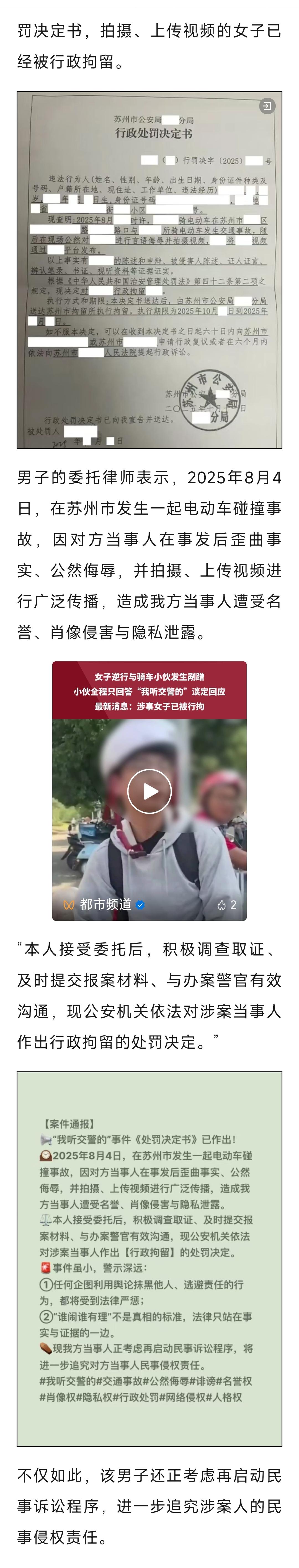 在今年8月份的时候,一则“我听交警的”的视频引发了热议,如今这个事件有了最新后续。 每个看似微小的依法抗争,都是法治进程的推动力。