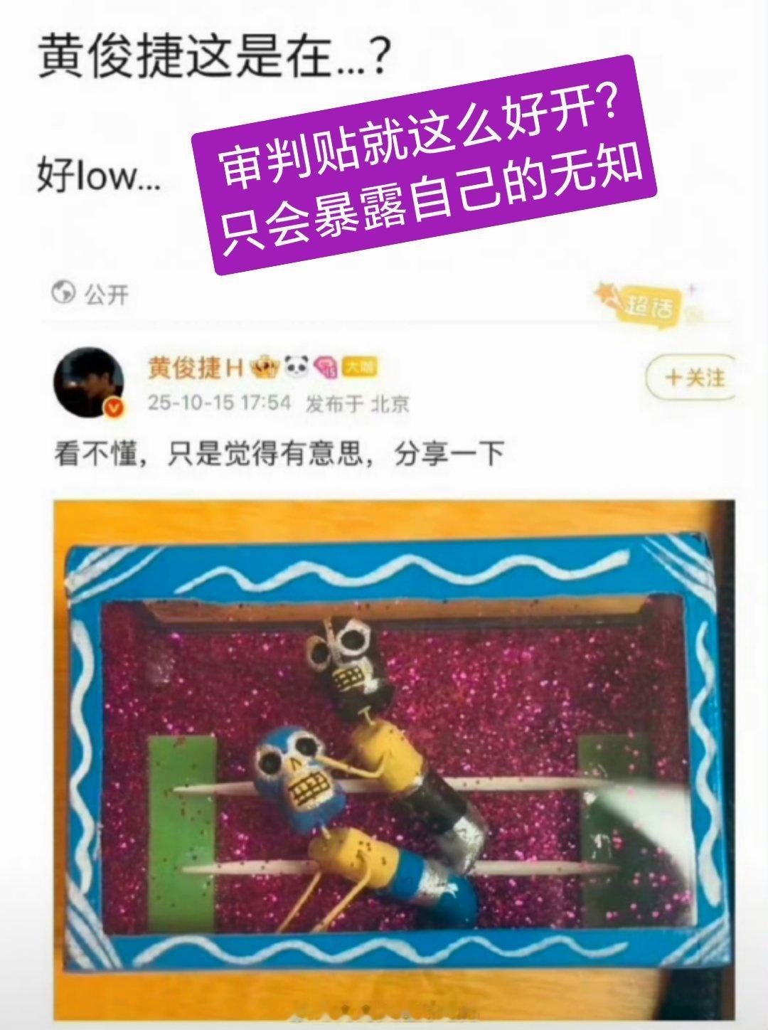 黄俊捷发在自己个人超话,和粉丝分享的是墨西哥亡灵文化手工骷髅拳击的图,能不能尊重下别国的文化啊,这也审判?真服了