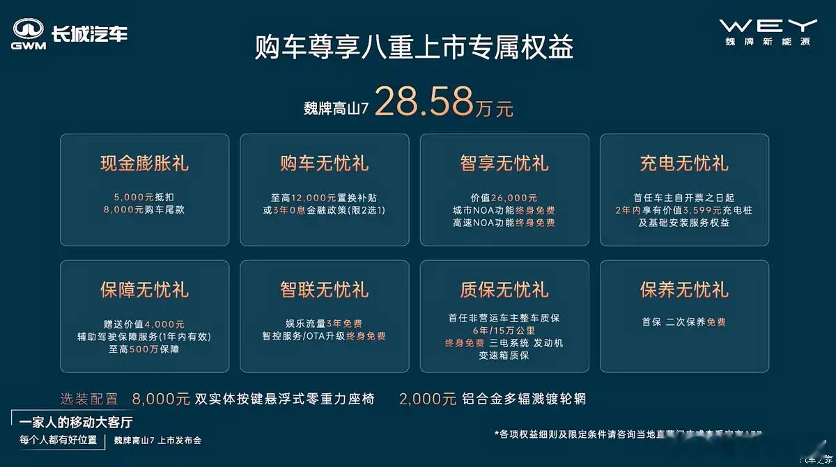 昨晚魏牌高山7正式上市了,28.58万元的起售价也符合我们此前的预期。