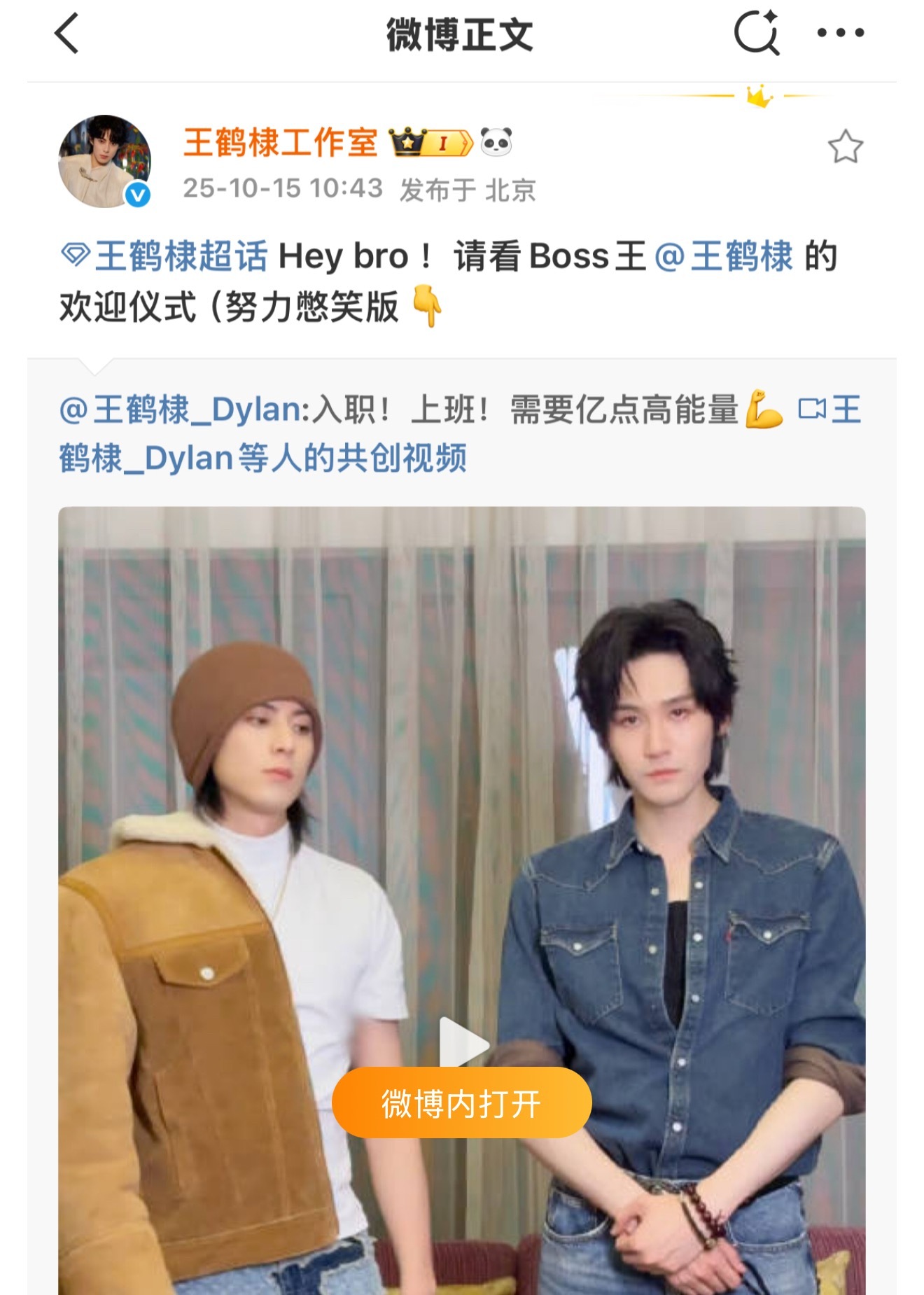 王鹤棣工作室艾特的是谁啊工作室艾特错了鹤棣名字,发博时不小心把写成了@ 王鹤棣 ,好在及时发现并二次编辑纠正了. 许我耀眼官抖卡点发长文许我耀眼官抖好用心