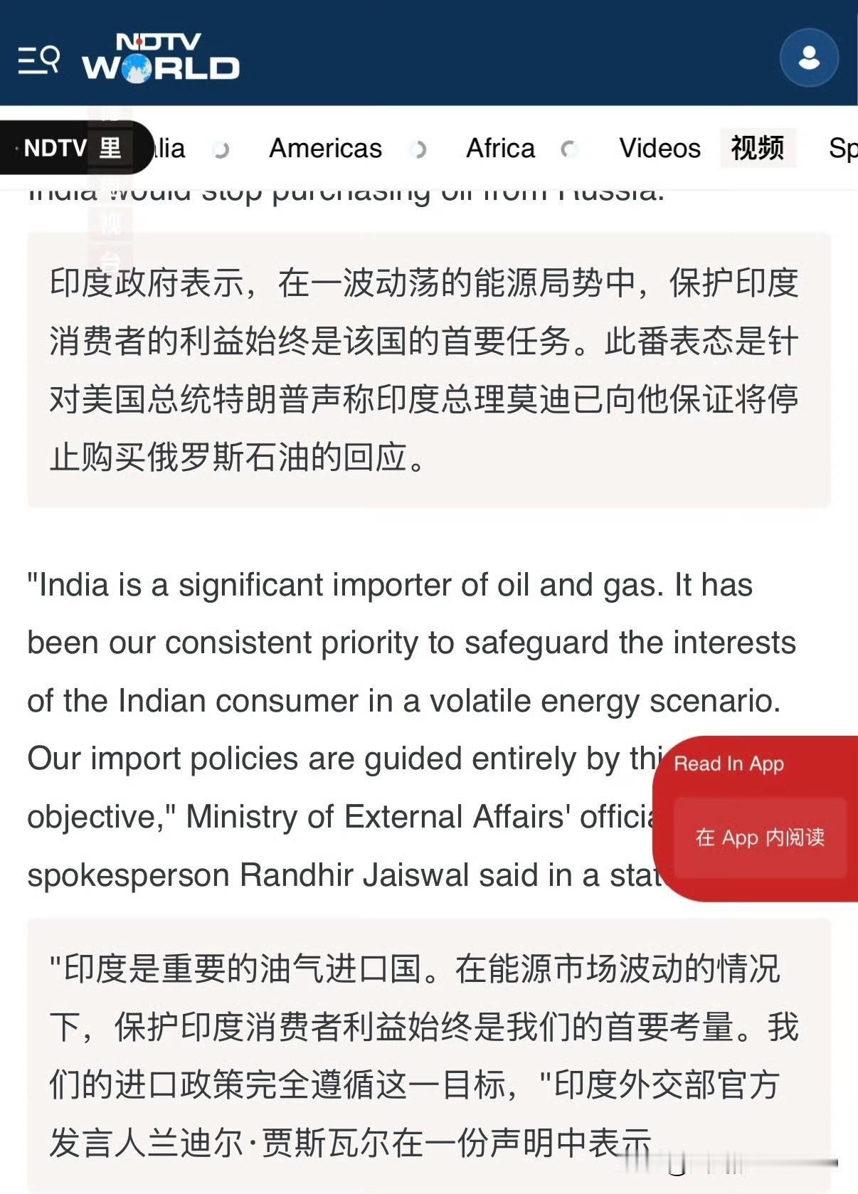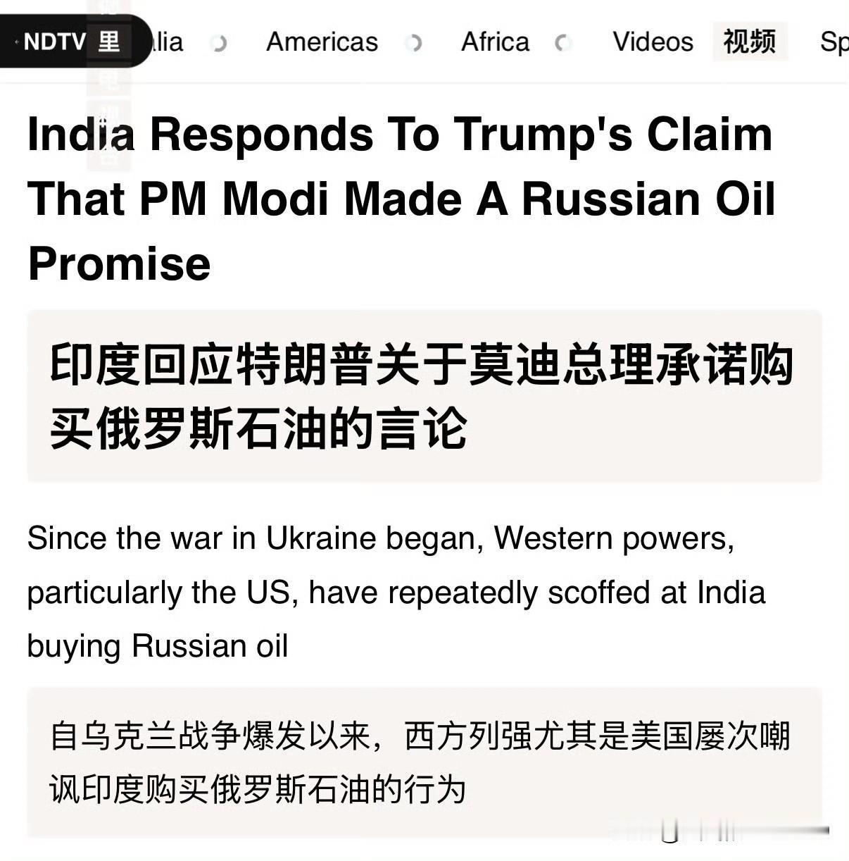 印度不再进口俄罗斯石油?美国总统特朗普信誓旦旦,斩钉截铁的表示,“印度购买俄罗斯石油,这让我感到很不高兴,莫迪总理今天向我保证,印度不会向俄罗斯购买石油了,这是一个重大的新闻” 对于此事,印度进行了回应。印度否认了特朗普“莫迪告诉我印度就停止购买俄罗斯石油”的说法。 印度外交部官方发言人兰迪尔.贾斯瓦尔在一份声明中表示“在一波动荡的能源局势中,保护印度消费者的利益始终是该国的首要任务。此番表态是针对美国总统特朗普声称印度总理莫迪已向他保证将停止购买俄罗斯石油的回应。 印度是重要的油气进口国。在能源市场波动的情况下,保护印度消费者利益始终是我们的首要考量。我们的进口政策完全遵循这一目标。” 所以得出结论,特朗普总统昨晚看来是喝大了,又把“赢学”搬出来准备吹嘘一番,结果砸了自己的脚。 另外,声明中开始还强调,自乌克兰战争爆发以来,西方列强尤其是美国屡次嘲讽印度购买俄罗斯石油的行为。
