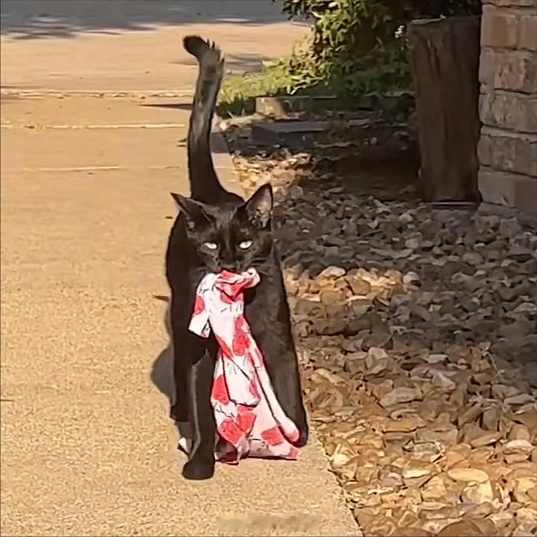 猫咪一直在外面顺东西回家,以至于猫主人不得不竖起一块牌子,让邻居们收回他们的东西。