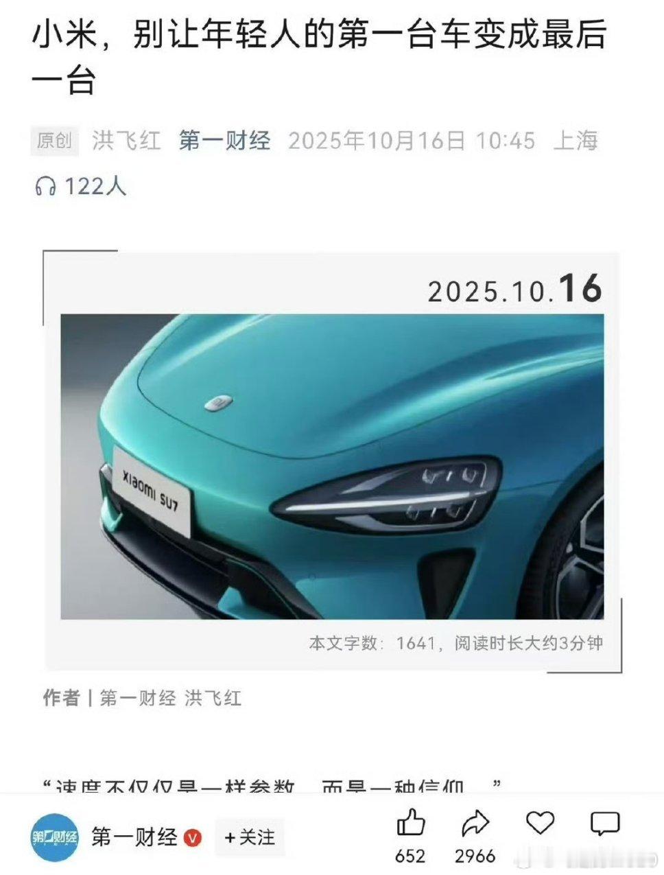如果要论证小米SU7不够安全,建议第一财经拿出点干货来证明,用公开公平的试验,来证明小米安全性不够。为所有汽车消费者做出正确的警示。