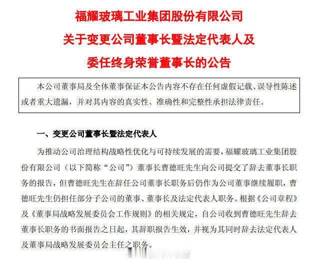 曹德旺辞去福耀玻璃董事长职务80岁了,也该休息了。捐款过百亿,是一位有担当的企业家。 ​​​