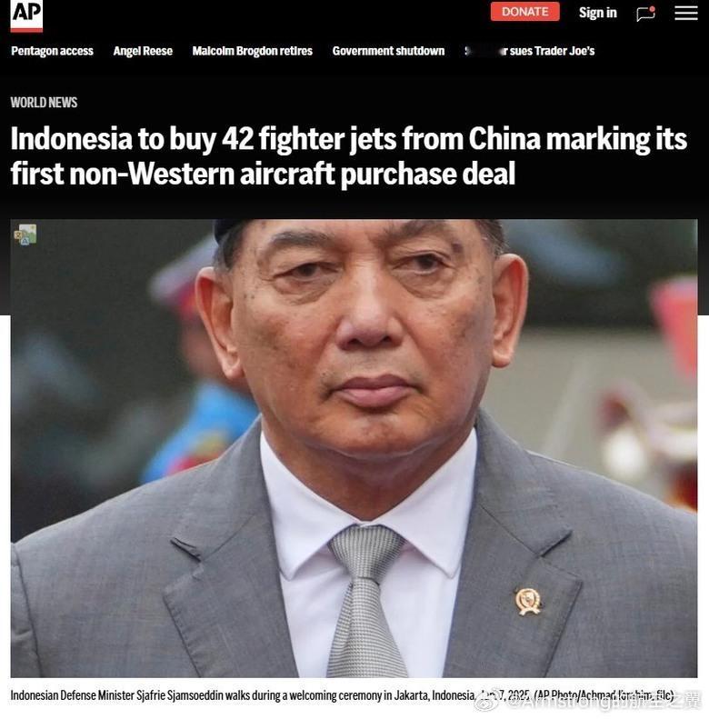 印尼媒体报道,印度尼西亚财政部长(Menkeu)Purbaya Yudhi Sadewa 证实,财政部已批准了购买歼-10战斗机的预算。Purbaya称,印尼购买中国产战斗机的预计金额达90亿美元。印尼将采购中国歼10战机烽火问鼎计划