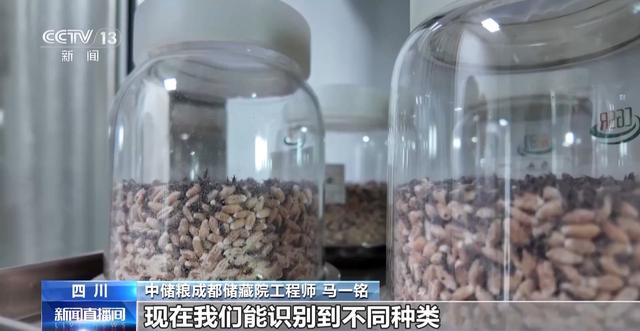 中储粮成都储藏院工程师马一铭:过去我们将这些黑黑的小虫子称为害虫,现在我们能识别到不同的种类。
