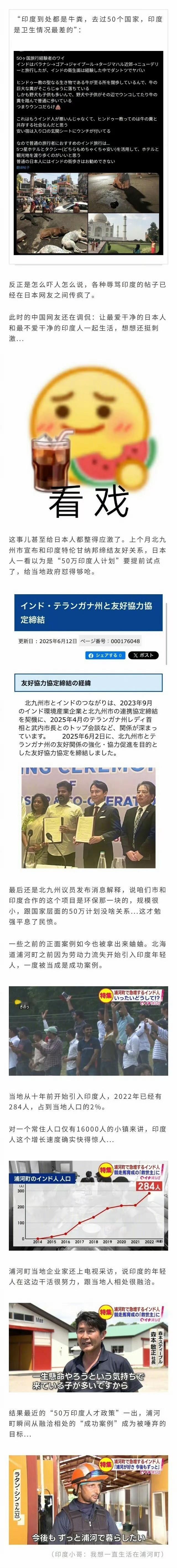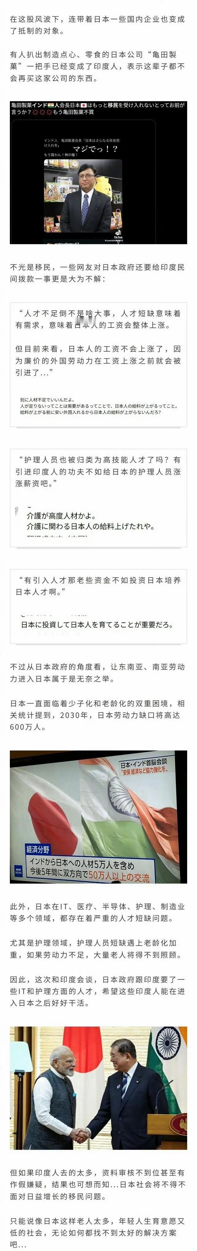 日本人以前骂中国人,现在骂印度人。因为劳动力不足,日本政府计划和印度开展50万人的互相交流,大量引进印度人到日本佛工作。效果很显著,现在日本很多店铺的服务员都是印度人。近几年很多中国人喜欢到日本旅游,在日本花钱买买买,本来一直觉得自己比中国富有的日本人坐不住了,所以经常在网上吐槽,说在日本到处都是中国人。而现在日本街头印度人更多了,但这些印度人不是来花钱的,而是来挣钱的,日本人更破防了,一致表示:不欢迎印度人!把印度人都赶出去!