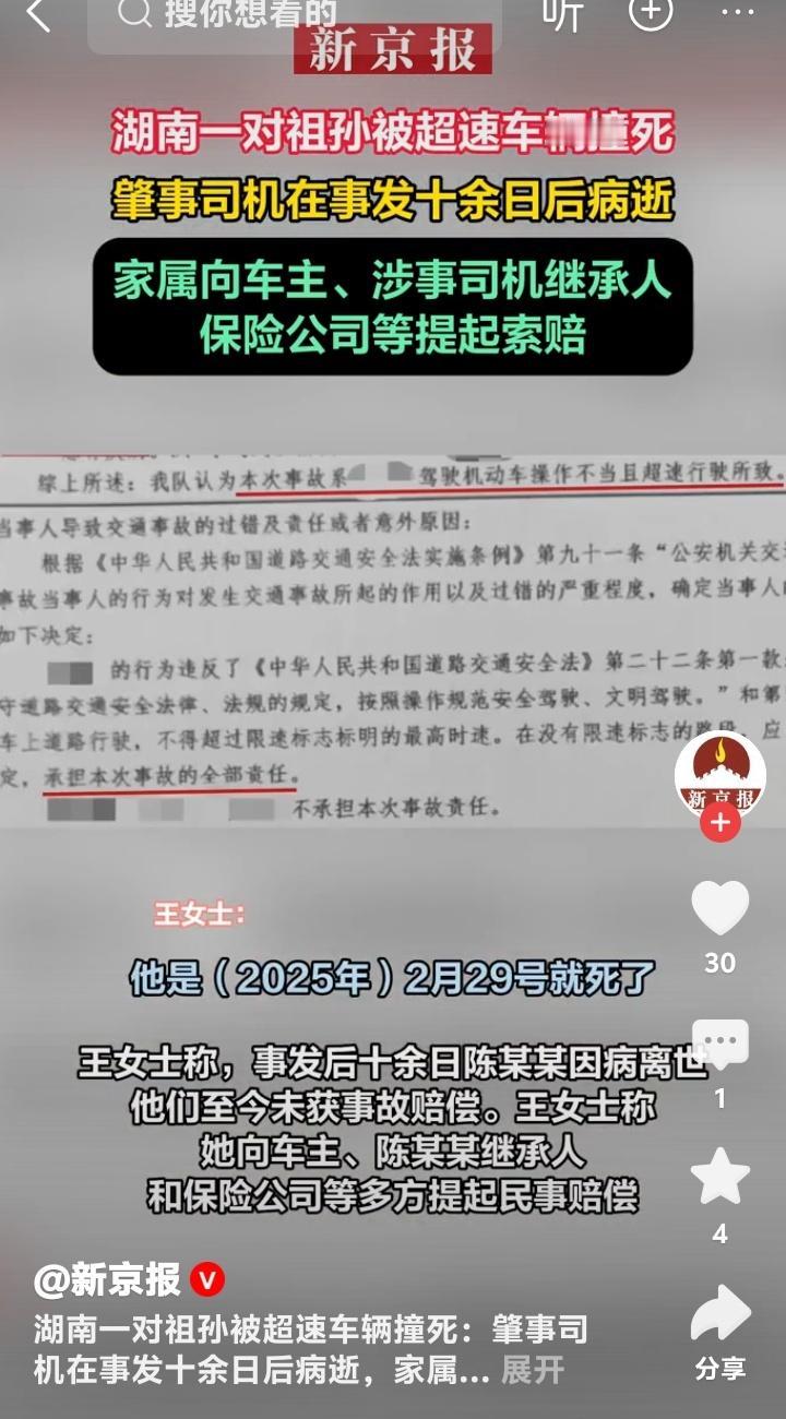 湖南攸县悲痛祖孙车祸案二次开庭:淋巴癌司机超速夺命,家属跨省追赔揭农村道路安全隐忧 (来源:新京报、黄河新闻网吕梁频道综合报道) 那个阳光温煦的午后,湖南攸县普安桥村的王女士从未想过,一声刺耳的刹车声会撕裂她的人生。今年2月11日,她的婆婆牵着3岁孙子的手在村道旁散步,距离路面不过一米多的距离,却成了阴阳两隔的鸿沟。一辆失控的轿车如脱缰野马般冲来,老人和孩子瞬间被卷入车轮下,另一名同行亲戚粉碎性骨折的惨呼,至今回荡在亲邻的噩梦里。 事故认定书上的冷硬文字,揭露了这场悲剧的根源——司机陈某某超速行驶且操作不当,负全责。但更令人窒息的是,这辆夺命车的车主竟非肇事者本人,车辆仅投保了交强险,赔偿额度在两条人命面前犹如杯水车薪。王女士颤抖着说:“他(陈某某)是淋巴癌晚期,事发十几天人就没了,我们连一句道歉都没等到。” 这场诉讼早已超越简单的索赔,成了底层家庭与命运抗争的缩影。二次开庭时,王女士将车主、陈某某的继承人、保险公司一同告上法庭,却面临“责任人病逝、保险不足、车主喊冤”的僵局。农村道路安全设施缺失、车辆保险意识薄弱、重病司机驾车的监管盲区,如同连环锁链般缠绕着案件的真相。 有村民私下透露,事发路段常年缺乏减速带和警示牌,电动车与机动车混行险象环生。而陈某某明知病重仍冒险驾车,背后是否藏着农村医疗资源匮乏的无奈?当法律撞上人情,当生命权遭遇赔偿困局,每一个细节都戳中公众的痛点。网友愤慨评论:“超速司机病逝是巧合,但保险漏洞和道路隐患却是扎心的必然!” 王女士的代理律师指出,此类案件暴露出我国交通事故救助体系的短板。若肇事者死亡且保险不足,受害者家属往往需耗时数年追偿,甚至陷入“赢了官司拿不到钱”的窘境。而事故车车主是否尽到管理义务、继承人是否需在遗产范围内赔付,这些法律争议恰是公众期待法庭厘清的关键。 悲痛之外,更需警醒。据统计,农村地区交通事故死亡率连续多年高于城市,超速、无证驾驶、车辆安检缺失成三大元凶。此案若能推动农村道路安全升级,或将成为用生命换来的进步。正如一位法学专家所言:“每起悲剧都应成为制度完善的催化剂,而非仅仅是个案的唏嘘。” 如今,王女士仍攥着孩子生前最爱的小玩具等待判决。她说不为天价赔偿,只求一个公道:“如果路更安全一点,如果司机多一分敬畏,我的孩子或许还能喊我一声妈妈。”这句话,何尝不是千万家庭对生命安全的共同期盼? 湖南 祖孙车祸案 二次开庭 交通事故 车主癌症去世 维权农村道路安全 保险赔偿困境 (本文综合自新京报、黄河新闻网吕梁频道、攸县法院庭审记录及道路安全调研数据)