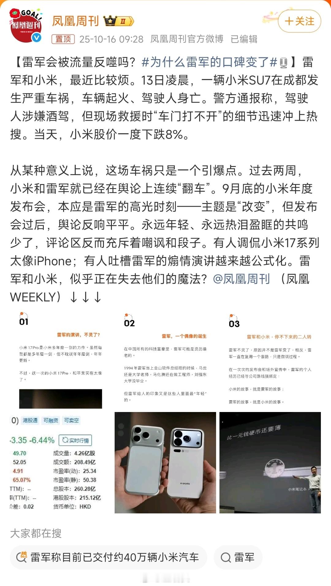 为什么雷军的口碑变了 莫名其妙一条热搜上来了,就问你惊不惊讶?难道这也是雷总自带热度上来的?