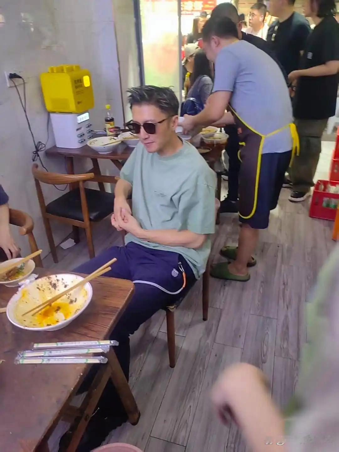 45岁谢霆锋现身重庆某餐馆吃面,打扮低调却难掩帅气!梳着利落油头,一碗满满的面全吃完,这般接地气的模样,完全没有明星架子。
