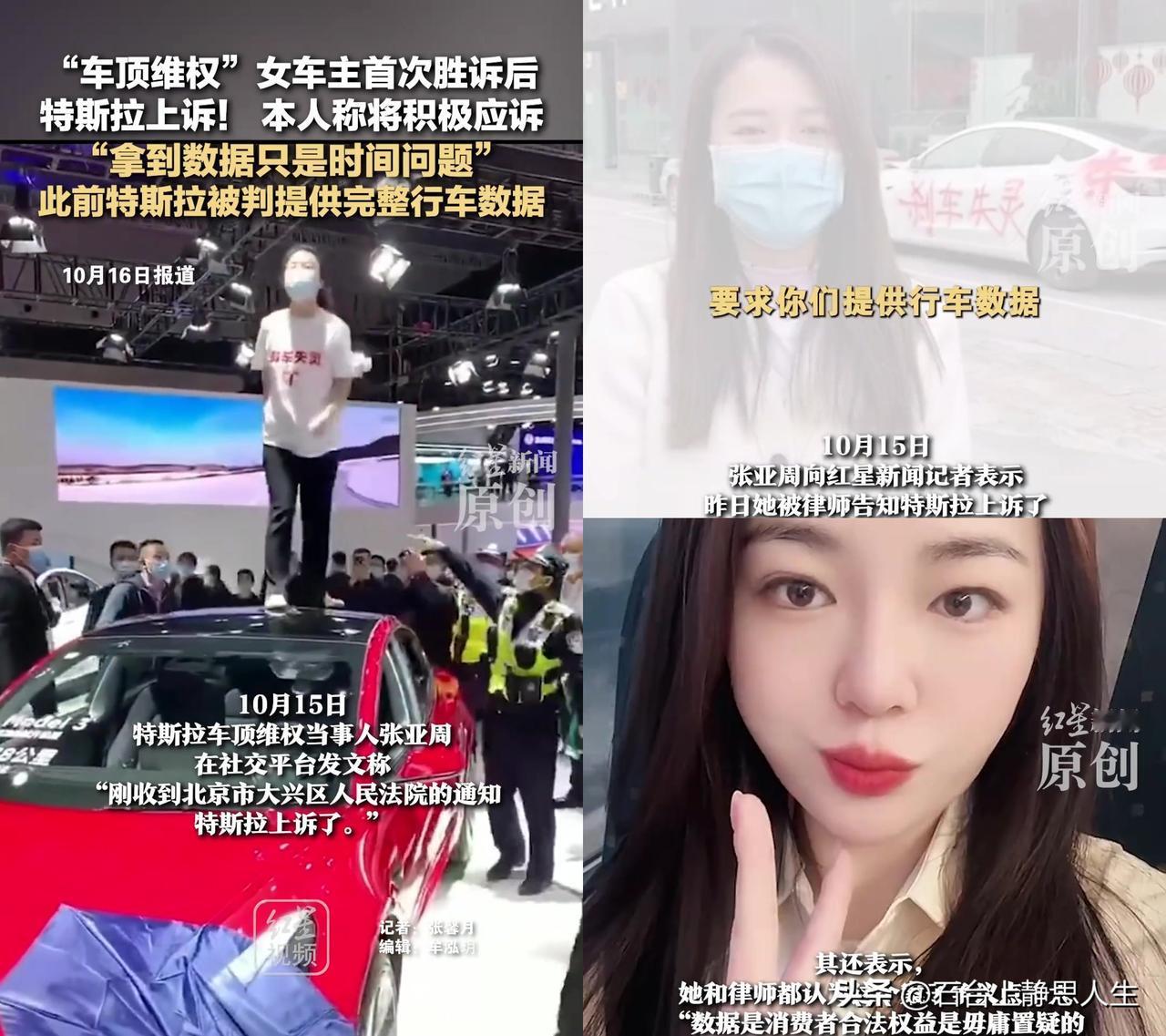 五年前车顶维权的张亚周又上热搜!这次不是她闹,是特斯拉急了? 别搞混!她没