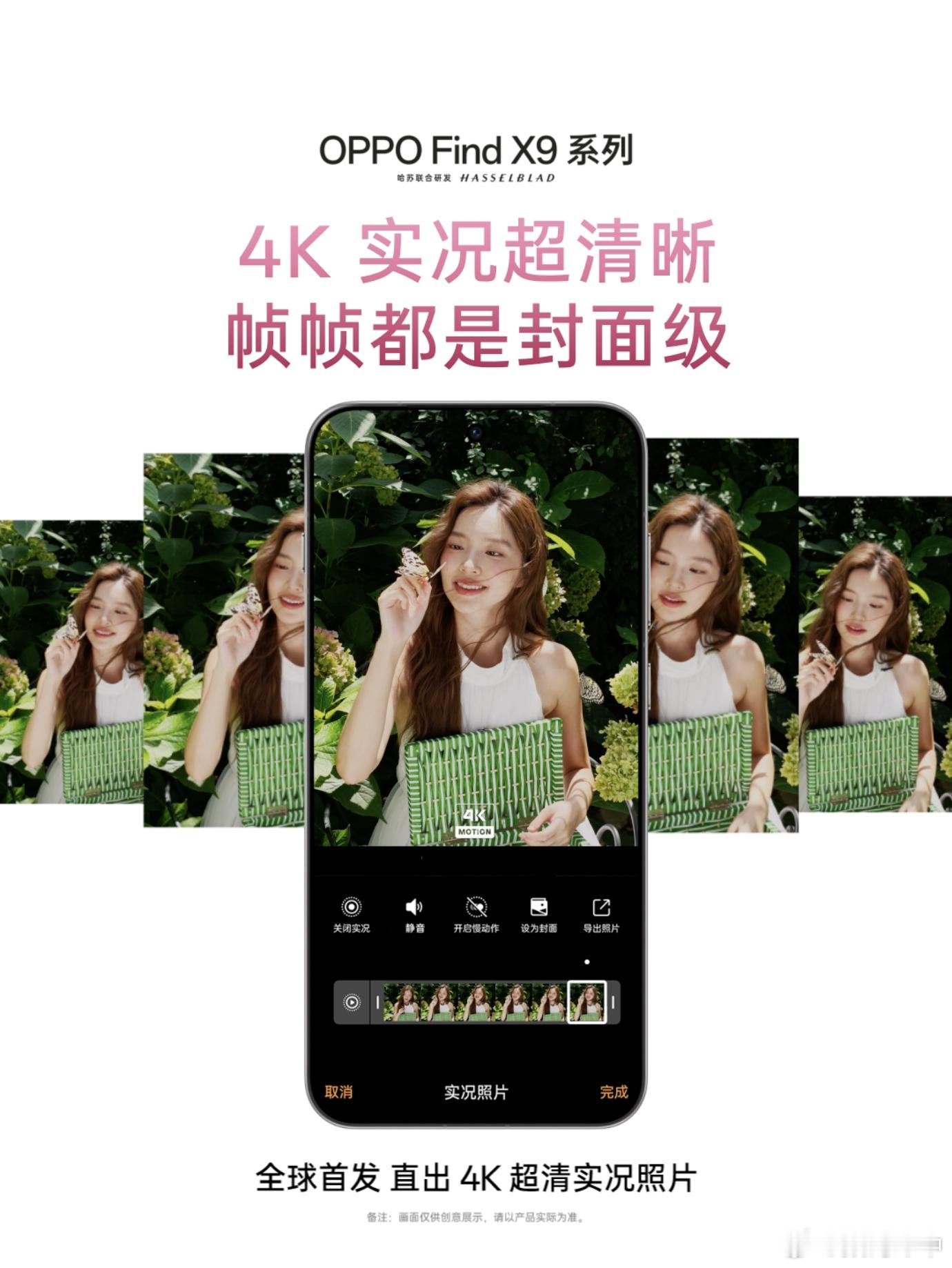 Live Photo这个功能iPhone先做出来的,虽然各家也在跟进,但是各家旗舰做出来的分辨率连2k都达不到,只能说是有这个功能,谈不上好用,OPPOFindX9首发4K超清实况这次OPPO Find X9做到了4K,分辨率远超同行,甚至已经超过了标杆iPhone,真的做到了每一帧都清晰,真的是对上了 “苹果发明实况,OPPO进化实况”,这一次OPPO属于青出于蓝胜于蓝,超越老师了!