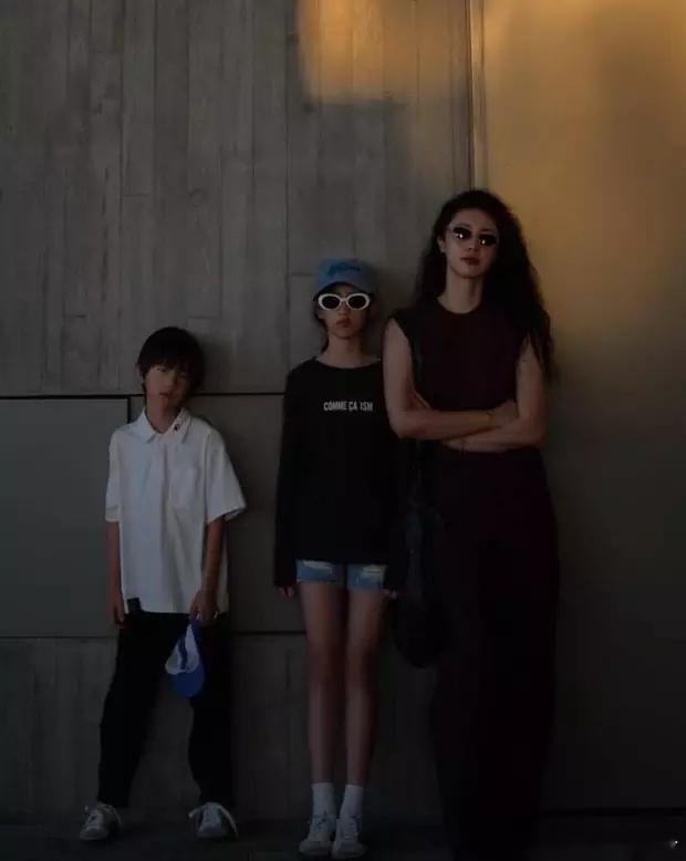 分享娱乐[超话]分享娱乐 孙莉和两个孩子一起合影,女儿长腿吸睛,身材比例优越。