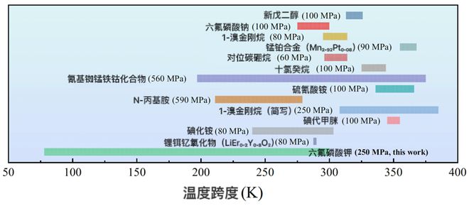 常规压卡效应材料与六氟磷酸钾的工作温度范围比较