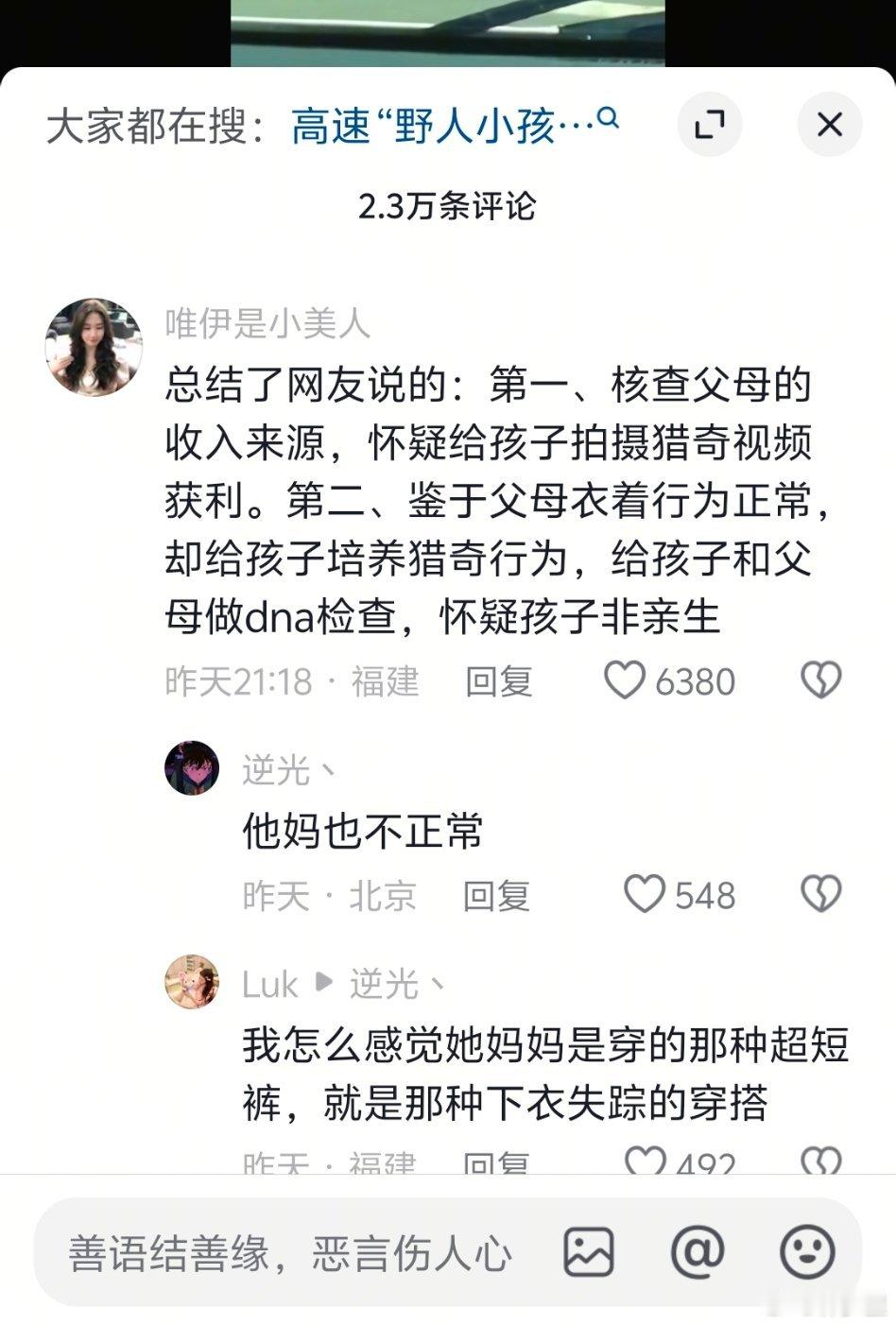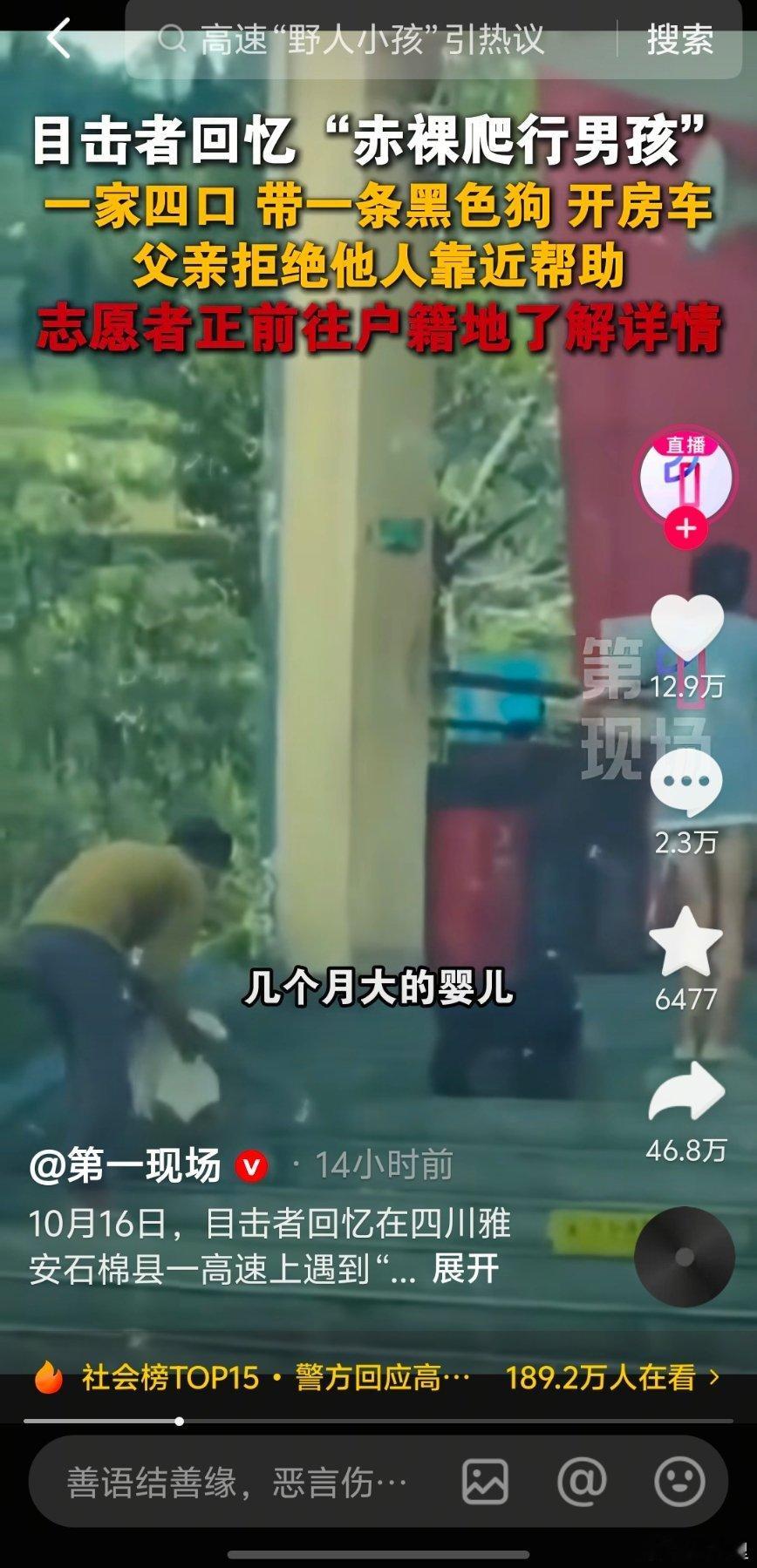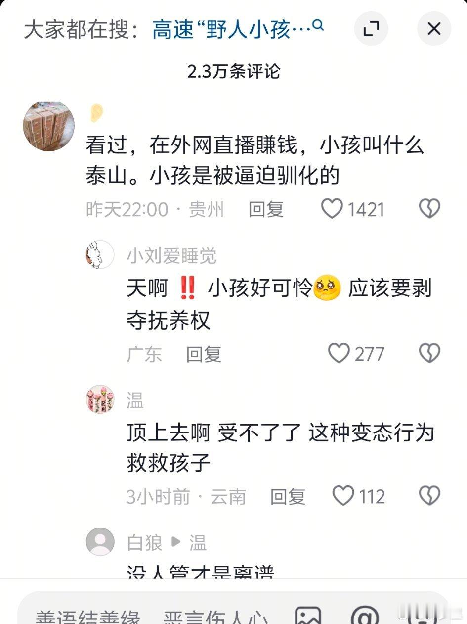 看看抖上的评论,说这是那种特殊网站的用户,把小孩当野人驯养是为了猎奇直播赚钱,小孩甚至都可能不是亲生的,都没户口。