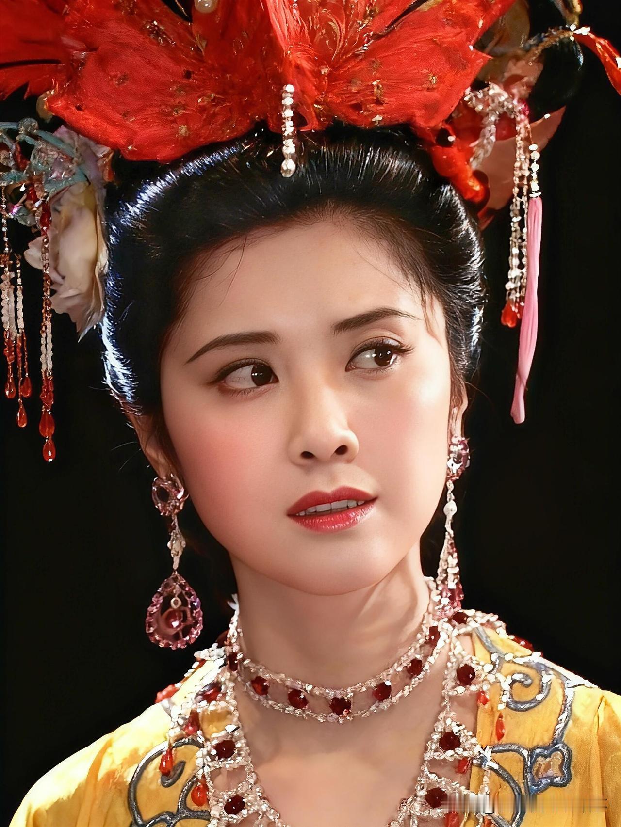 “趣经女儿国”的定妆照,还是会被朱琳饰演的女王惊艳到——这份美貌,即便放到港片黄金年代,跟林青霞、王祖贤、钟楚红、张曼玉比也完全不怵! 她的美不只是皮相精致,更藏着女王独有的雍容华贵。面容舒展大气,姿态端庄又带着几分柔情,一颦一笑都让人信服“这就是女儿国国王”,尤其是最后一图的眼神,直接封神,仿佛让遥远的女王变得触手可及。 更难得的是动态比静态更绝!有一年西游记主题春晚上,她再现女王形象,那份鲜活灵动,比定妆照还要抓人。只可惜,除了“女儿国”这一集,她没留下更多经典作品让观众继续欣赏这份顶级美貌,也难怪会有“朱琳过后再无女儿国”的说法。 当然,这份经典不只是演员的功劳,贴合角色的妆造、整个演职员团队的用心,才共同成就了这抹跨越时光的惊艳。你当年看“女儿国”时,最先被她的哪一点打动? 女儿国国王