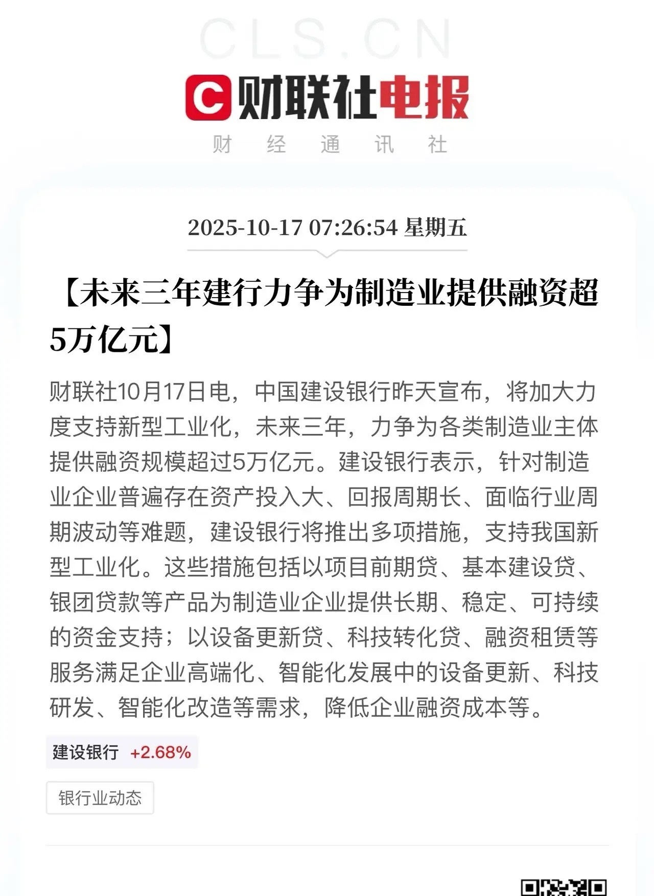 建设银行重磅消息,