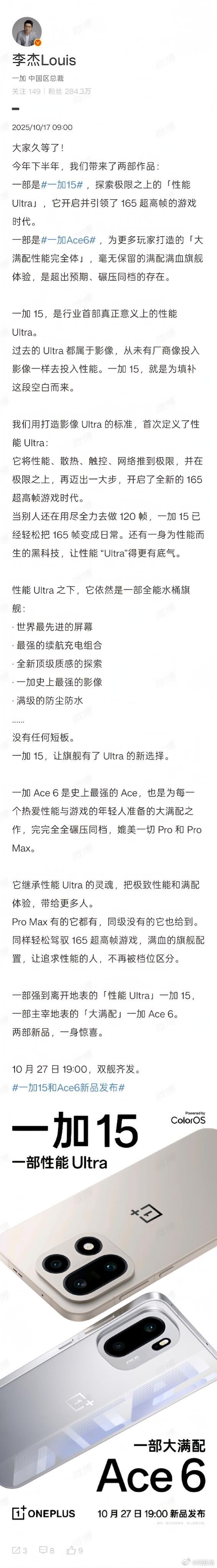 一加15和Ace6新品发布