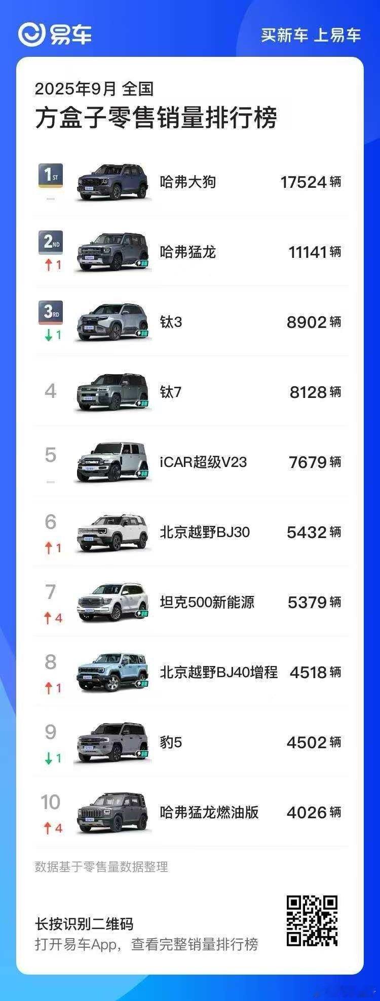 易车月考成绩单新鲜出炉!哈弗大狗17524辆蝉联9月方盒子车型销量TOP1!哈弗