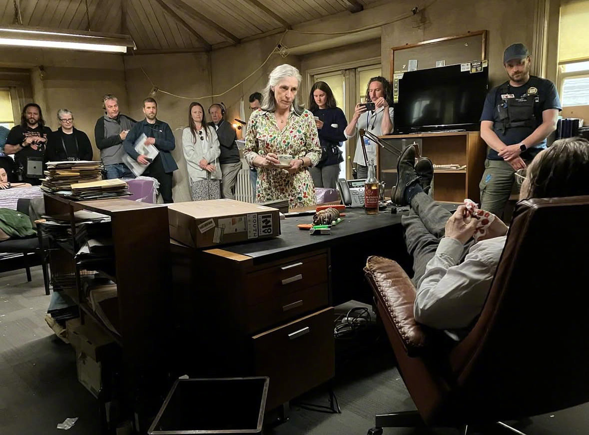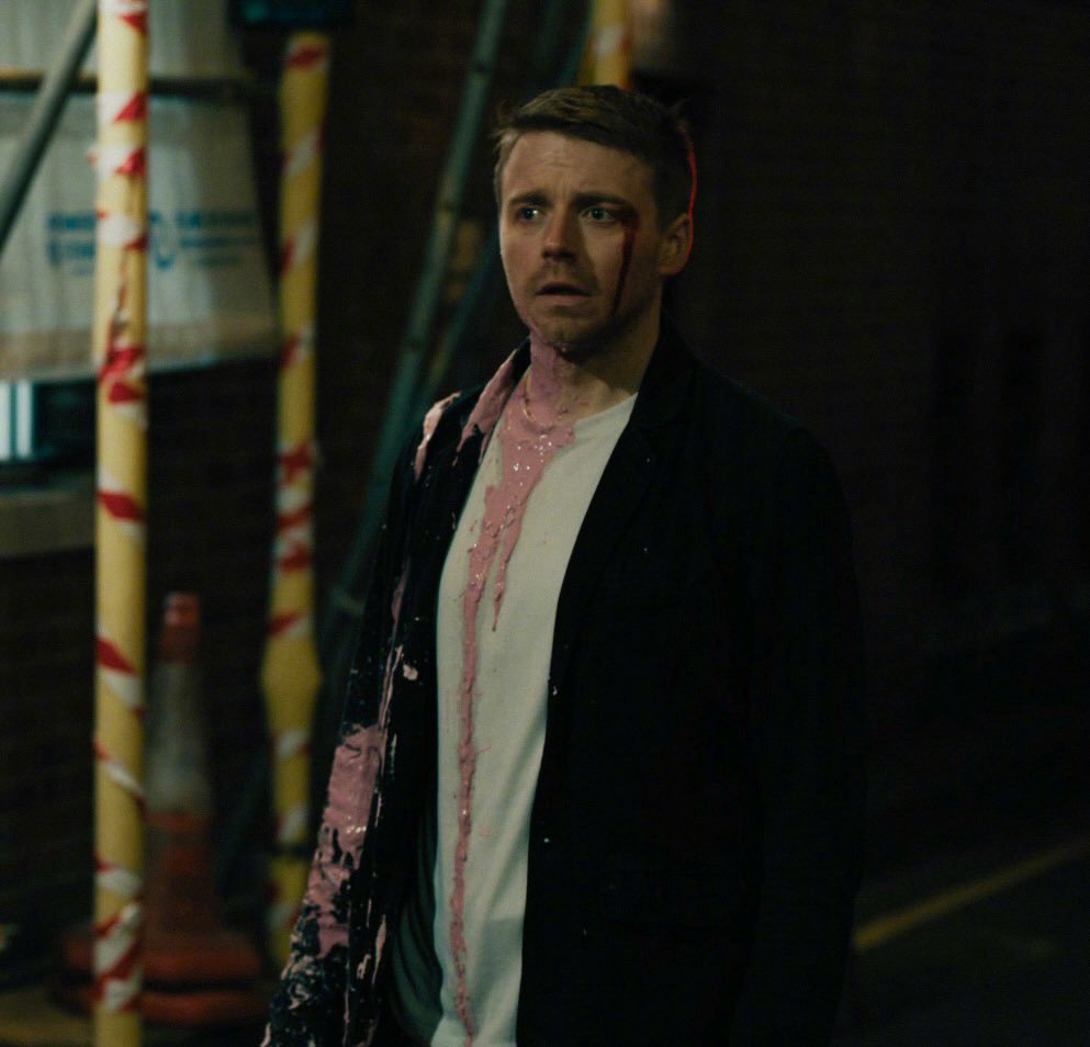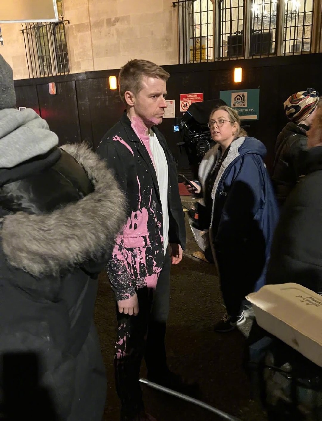 流人第五季 剧组分享本季第4集幕后照,杰克·劳登饰演的River Cartwright目睹了一场《死神来了》[允悲] 这是本季拍摄的最后一场戏,泼在他身上的粉色“油漆” 其实是酸奶,但连续拍了好几个晚上,戏里戏外折腾小河的方式又+1了~