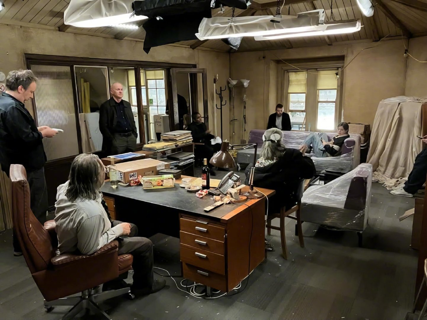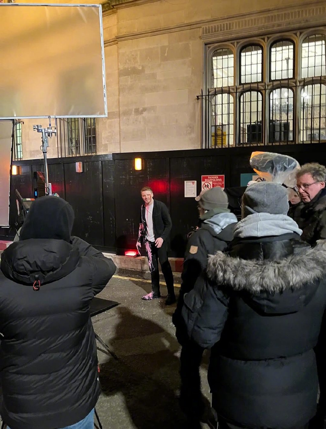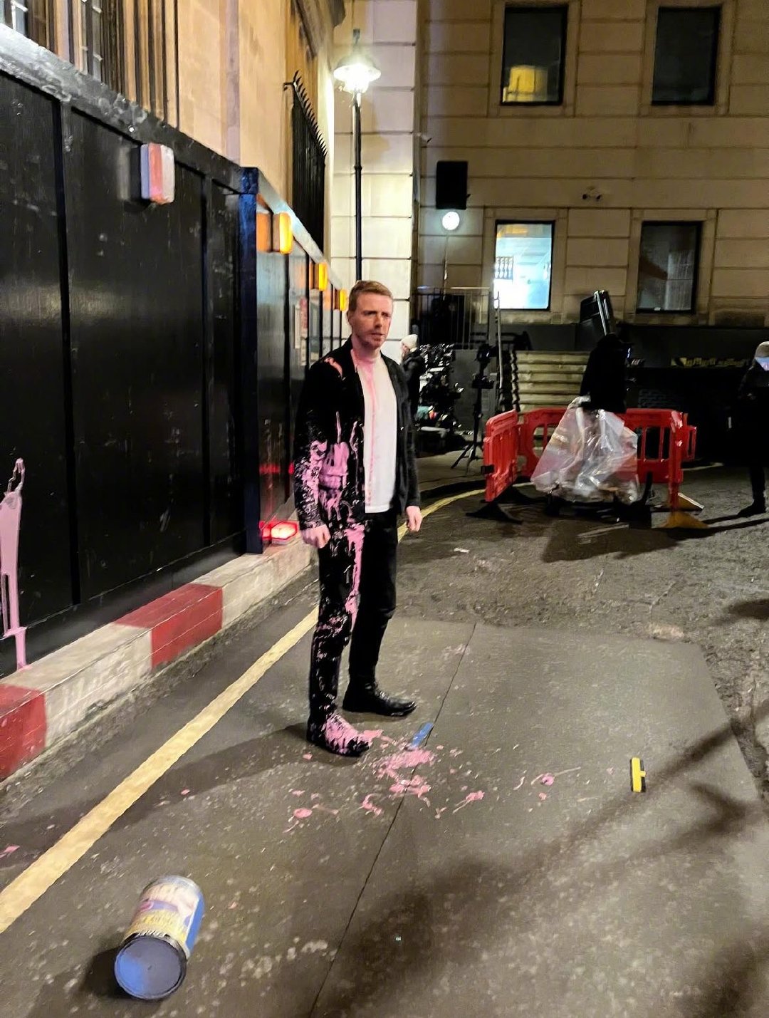 流人第五季 剧组分享本季第4集幕后照,杰克·劳登饰演的River Cartwright目睹了一场《死神来了》[允悲] 这是本季拍摄的最后一场戏,泼在他身上的粉色“油漆” 其实是酸奶,但连续拍了好几个晚上,戏里戏外折腾小河的方式又+1了~