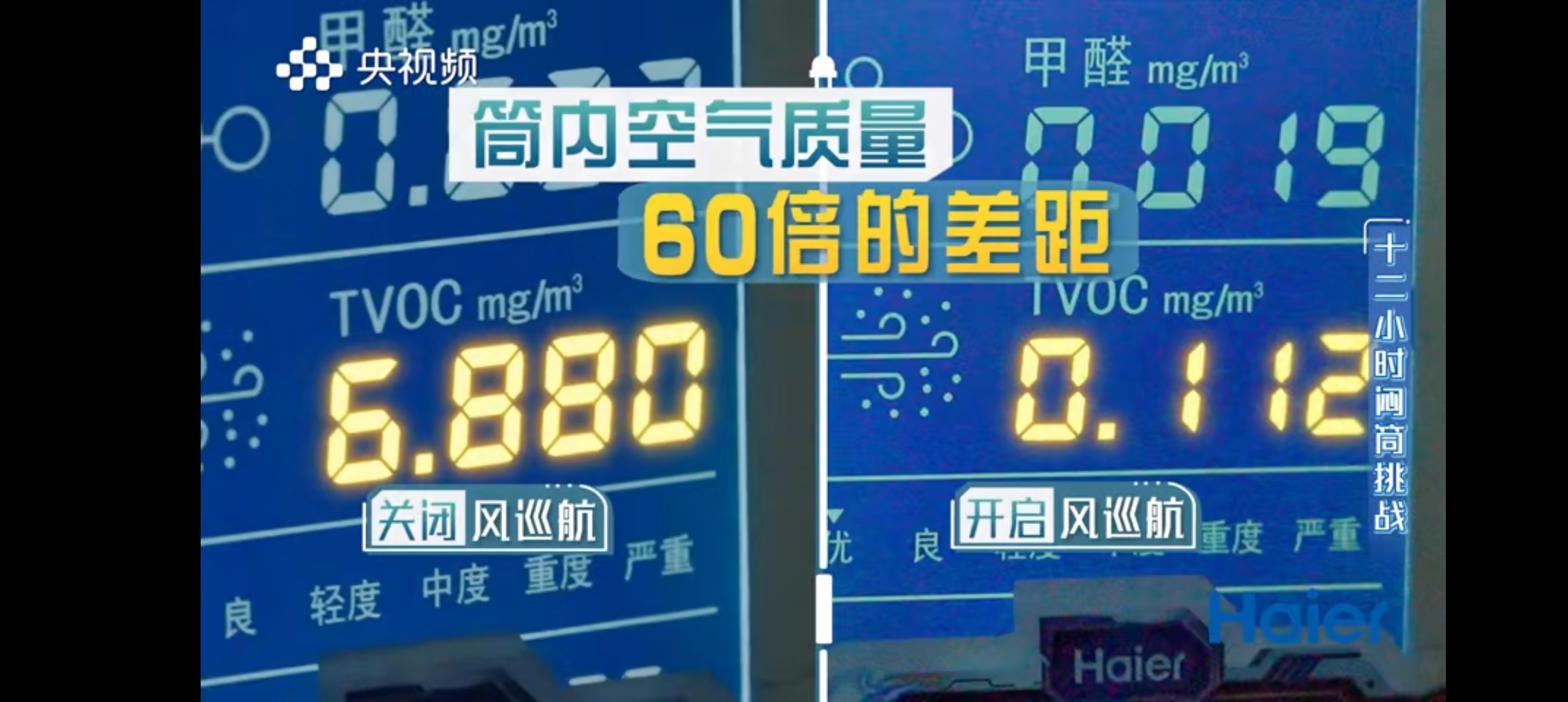 海尔麦浪X11就是为了这个痛点而来的。12小时闷桶挑战,普通洗衣机关上门那股味儿熏得人想yue,而开了风巡航模式的海尔,用空气质量检测仪一测,挥发性有机物浓度低到离谱,味道好闻多了!