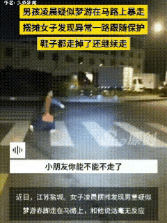 “这孩子该不是在梦游吧?”盐城凌晨摆摊的大姐撞见那男孩时,估计心都提起来了——赤脚在马路上瞎晃,喊不答应,过马路也不看车,手里还攥着个袋子,看着就揪心! 大姐没当“多一事不如少一事”,喊了好几声没反应,立马就报警了,这才没让危险找上孩子。网友吵着说梦游能不能碰,可我觉得最该夸的是大姐这份心:凌晨做生意本就累,还能留意到陌生孩子的异常,没撒手不管。 要是换成别人,可能就远远看一眼算了,哪会主动操心?其实不管男孩是不是梦游,能在深夜护住一个陌生孩子的安全,这就是真善良。你们要是大半夜遇到这种事,会像大姐一样主动帮忙吗?