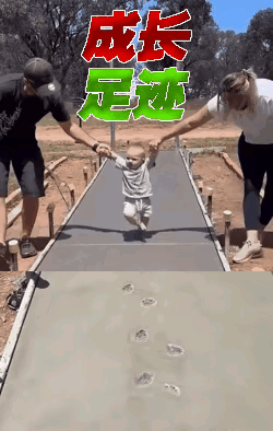 家长这样做对吗? 这是家门口刚修的路,家长让一岁左右的孩子在水泥路上踩,想留下