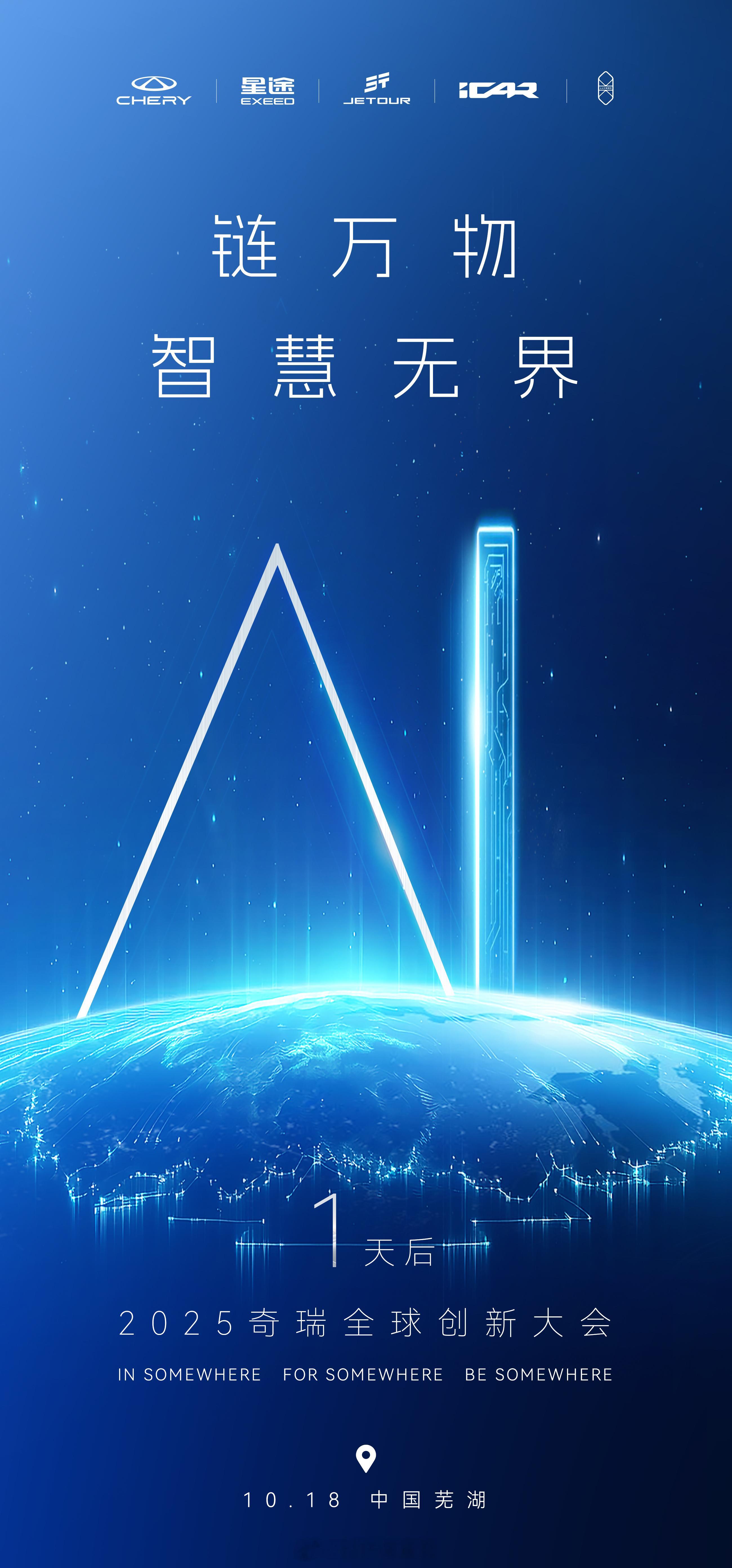 2025奇瑞全球创新大会 这个图的意义很大,链万物,智慧无限的意思我个人分析这就是AI的意思,两个大大的字母把AI进行链接,可见奇瑞对于创新是有自己的东西,明天芜湖见了~