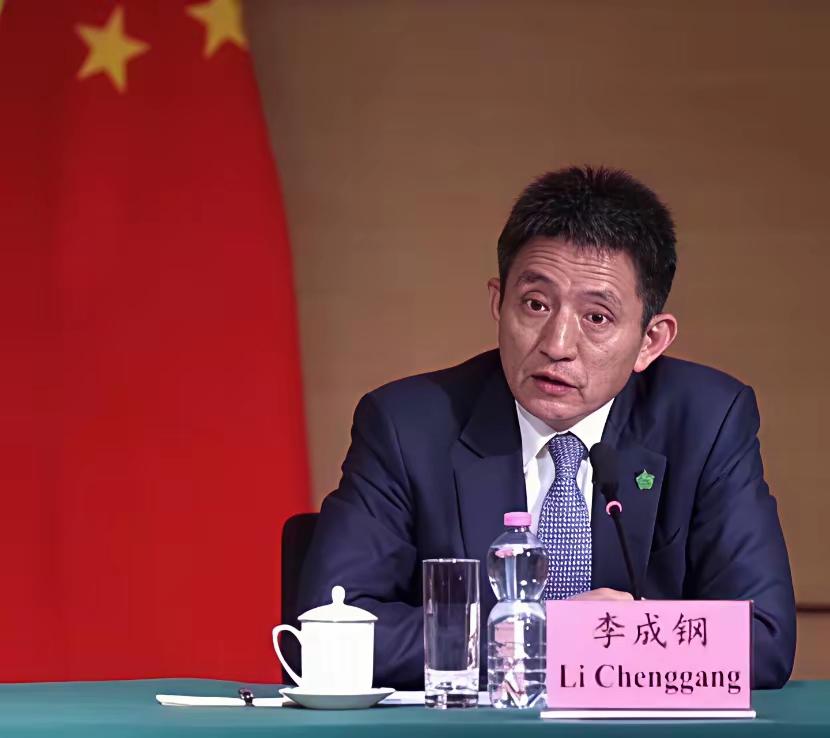 美国政治学者IanBremmer发布了一张和李成钢部长在北京的合影,讽刺贝森特