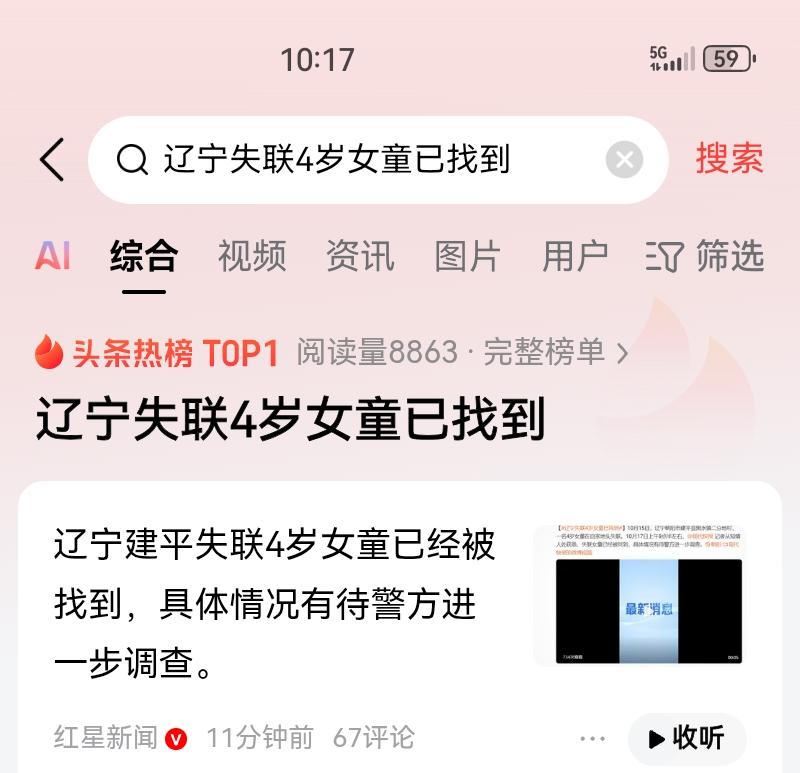 没丢就好,愿天下无拐,辽宁失联4岁女童已找到,看过刘德华演的那个《失孤》,才知道啥叫心碎,以前丢了孩子十个有八个就找不回来了, 现在好,现在有无人机,有热成像,有热心的网友有人民警察,还有越来越完善的防拐机制。 这年头大家也都不容易,还有好多在等待中煎熬的家庭,如果有一天实在扛不住了,相信孩子也能理解…… 就好像没有哪个父母会记恨自己的孩子,希望他们遗憾和疲惫能少一点,肩膀能轻松一点,更希望奇迹能早日降临到每一个等待的家庭。 希望所有人贩子都得到最严厉的惩罚!