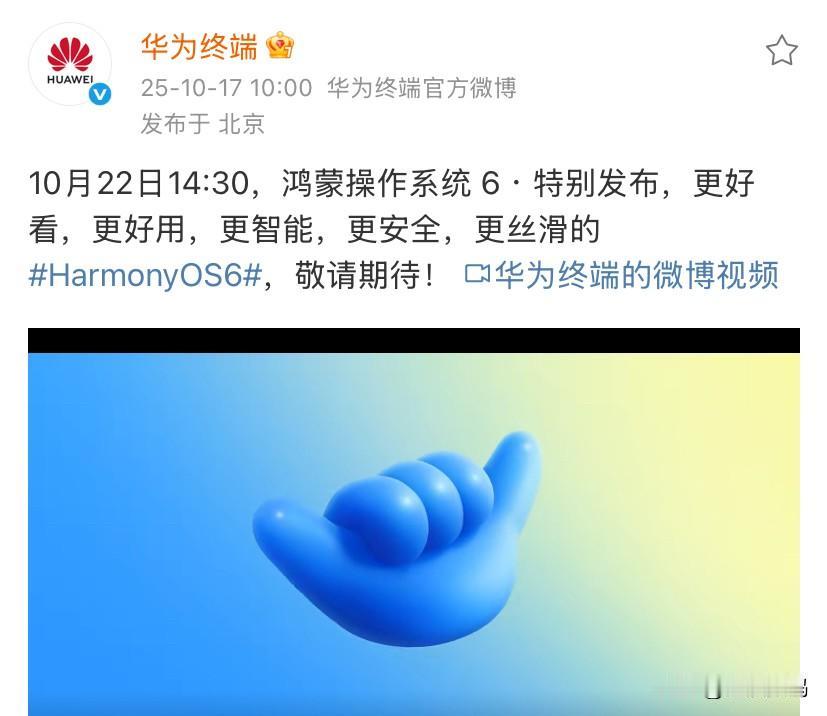 刚刚,华为正式官宣! 本月22日下午2:30,华为鸿蒙操作系统6.特别发布,此系统,华为用5个“更”诠释了这个系统的全部优点,即“更好看、更好用、更智能、更安全、更丝滑”。666,祝福华为66大顺,溜溜到底,越来越好。 我们一起期待华为鸿蒙6系统的到来。 华为鸿蒙6.0 华为鸿蒙5系统 鸿蒙6.0