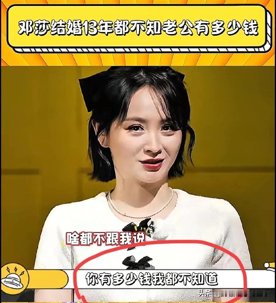 “结婚都十几年了,我还不知道你有多少钱!” 这是《再见爱人 5》里,邓莎在节目上对她老公说出的话。 邓莎的老公路行,是身家数亿的企业CEO,在外人眼里,邓莎住着豪华的别墅,儿子可以上着名牌学校, 衣食无忧,日子过得应该是很好。 可是哪里想到,她竟然也有这么多委屈。 当别人问她老公路行,邓莎对家里做得最大的贡献是什么的时候,他竟然只说了一句“生儿子”,对邓莎的埋怨也只是说,钱是不断变化的,够你花就行了。 好像在他的眼里,只要让家里人吃好穿暖,其他的事都不是大事。结婚这么多年,他们经常聚少离多,俩人一天说话的时间,都不超过十几分钟。 其实夫妻俩之间最需要的是情绪价值,不管有钱没钱,对方更看重的是你在不在乎他的感受。 就像陆行说起,自己老婆演戏的前途,他怎么看的时候,只是淡淡的说,演一些宫女丫鬟 也没什么大前途。 殊不知,每一个演员心里面都会有一个拿奖的梦想,哪怕你的一句鼓励,都可能是他前进的莫大的动力。 你们家的夫妻感情是怎样的呢?