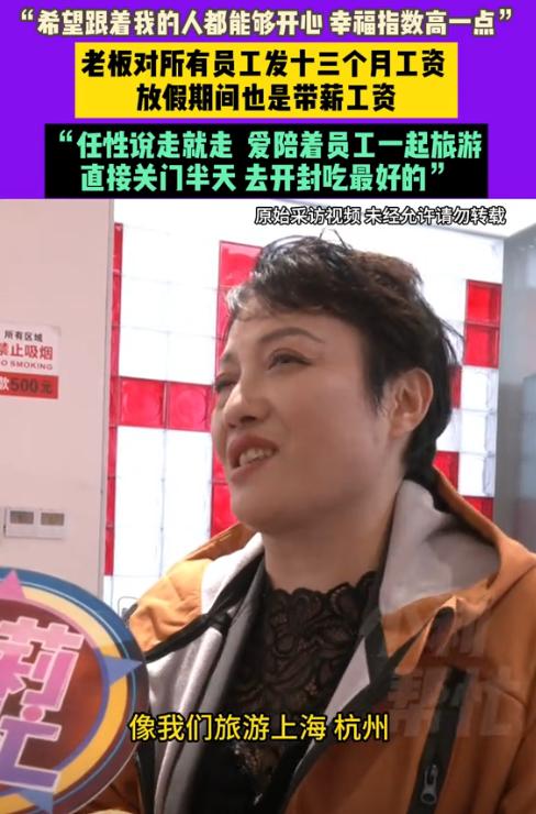 “又一个胖东来!”河南50岁员工请200天长假照顾父亲,老板竟然工资照发,得知员工生病,第一时间垫付一二十万,哪里有好吃好玩了,宁可歇业,也要带员工组团出去玩,问其老板为何这样,一句话羡慕死“希望跟着我的人都能够开心,幸福指数高一点。”网友:继于东来、催培军后,又一个好老板! 现在市面上,说自己重视员工的老板一抓一大把,可真能把 “重视” 俩字落到实处的,掰着手指头数,王红霞绝对算一个。 王红霞这人,没什么花里胡哨的经营理论,常挂在嘴边的就一句实在话:“跟着我的人,得让他们过得开心,幸福指数得往上提一提。” 别以为这是老板们常说的场面话,她可是真刀真枪在做。 2023 年之前,店里的员工每年都能拿到 13 薪,就算是放假在家歇着,该给的工资一分都不会少,实打实的带薪休假。 跟着她干活,不光能攥着稳定的收入,还能跟着 “沾光享福”—— 上海的外滩、杭州的西湖、日照的海边,这些地方她常租辆大巴车,拉着员工们去逛一逛、玩一玩;要是听谁说开封的小吃地道,她更干脆,直接关半天店,雇上辆大公交,带着店里所有人奔开封,就为了吃口最正宗的灌汤包、炒凉粉,一点不心疼那半天的营业额。 用她自己的话说:“我本身就爱玩,也乐意陪着手底下人一起乐呵,想干啥就去享受,别委屈了自己。” 这份 “任性”,看着是随性,其实藏的全是对员工的真心,不是一家人,哪能这么上心? 要说最让人眼眶发热的,还得是老员工王升的事。王升二十几岁就跟着王红霞,一晃眼都五十多了,大半辈子的光阴都耗在了店里。 2005 年那会,他父亲走了,家里一堆事儿等着处理,一年里请假快 200 天,搁别的地方,早就被辞退八百回了。 可王红霞啥也没说,工资照样发,到了年底还额外给了补助,怕他手头紧。谁知道 2017 年又出了岔子,王升高烧不退烧成了脑膜炎,住进医院就下不来床。 王红霞听说后,立马托关系联系专家,到了医院撂下一句硬气话:“花多少我垫多少,别心疼钱,先把人治好。” 前前后后一二十万的医药费,全是她掏的腰包。 真是应了那句 “人心换人心,八两换半斤”,老板对员工掏心掏肺,员工自然愿意跟老板共患难,这份双向奔赴,比啥都金贵。 很多人不知道,这位被网友夸成 “神仙老板” 的王红霞,最早就是个揣着 200 块钱从农村出来的姑娘。一开始在郑州火车站旁边租了个小破店,卖些平价睡衣,起早贪黑地干,慢慢才把生意做起来。 如今几十年过去,她的店早就不是当年的小作坊了,实体门店加电商平台,一年能卖上亿的货。 在睡衣这行摸爬滚打 28 年,她没忘了本,不光带着老家乡亲们一起挣钱。每年春节后开工第一天,她第一件事就是给员工发上个月的工资,就怕大家过年花多了手头紧,没法安心干活。 有人说:“员工把青春给了企业,企业把员工当家人,这才是真的互相成就,哪有干不好的道理?” 还有人感慨:“请假 200 天还照发工资,垫付十几万医药费,换别的地方想都不敢想,王老板这格局,一般人比不了。” 这话真没说错,现在不少职场里,全是 “只见利益不见人情” 的事儿,员工一旦遇到难处,老板要么躲得远远的,要么算计着怎么减少损失,跟王红霞比,差的可不是一星半点。 也有网友对比自己的经历,在评论里叹气:“同样是打工,差距咋就这么大呢?我上次请了三天假,全勤奖没了不说,还扣了不少工资。” 员工要的从来不是老板说得多好听,开多少空头支票,而是难的时候有人搭把手,付出了能被看见、被珍惜。 就像网友总结的那样:“你对员工真心,员工就对你死心塌地。” 王红霞的店里能留住王升这样的老员工几十年,靠的不是高薪诱惑,就是这份双向奔赴的信任,这份情分,比钱更重要。 “这样的老板活该发财”“要是所有企业都这样,谁还会想离职啊”,这些评论虽然简单,却是老百姓最实在的祝福。 其实职场里的温暖,从来不是啥惊天动地的大事,就是请假时老板不刁难,生病时有人递句关心、帮衬一把,开心时能一起分享喜悦。 信息来源: 小莉帮忙 2025-10-16 河南郑州,“河南女老板人品好,她给了我第二次生命。”