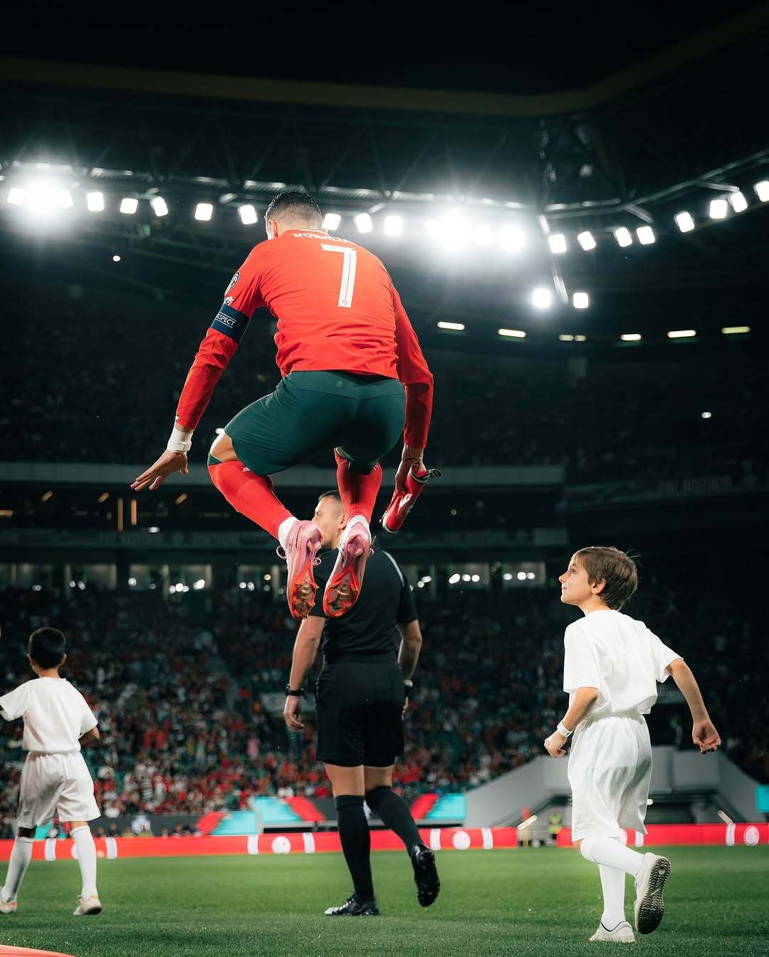 C罗[超话]葡萄牙2比2匈牙利 这小屁股小腰,像红裙子小公主赛后带队向球迷谢场