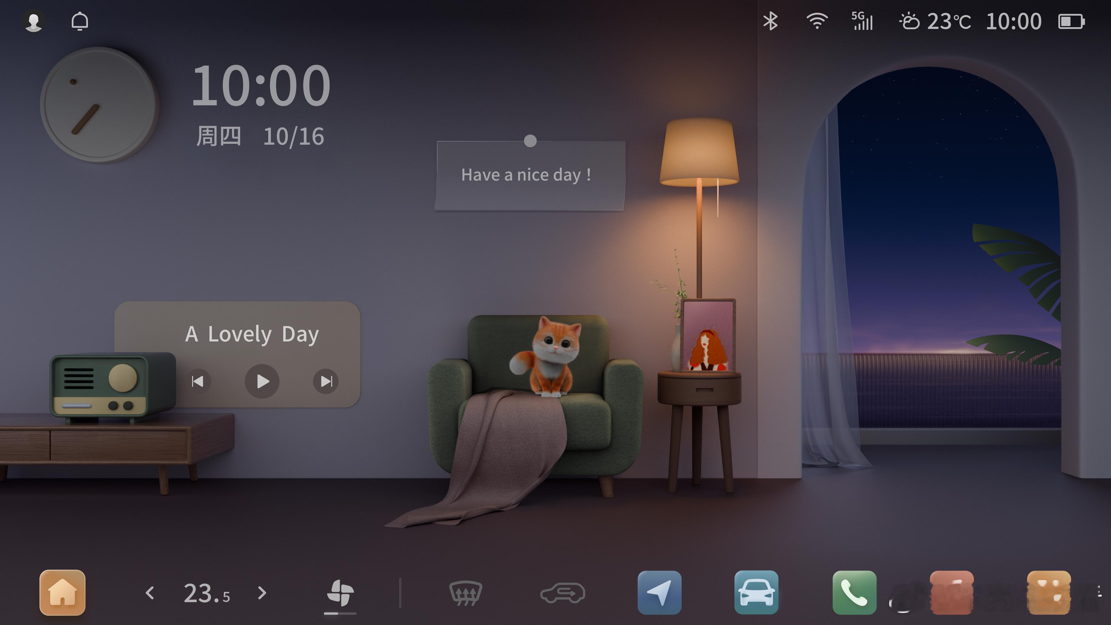 还有一个比较可爱的设计是新车配备了场景交互式HMI,并新增暗夜模式与全局手势回退交互,内置可自定义的萌宠形象与情景模式,从官方给出的图片来看,这个界面的确美观,与外观的可爱风格相呼应。