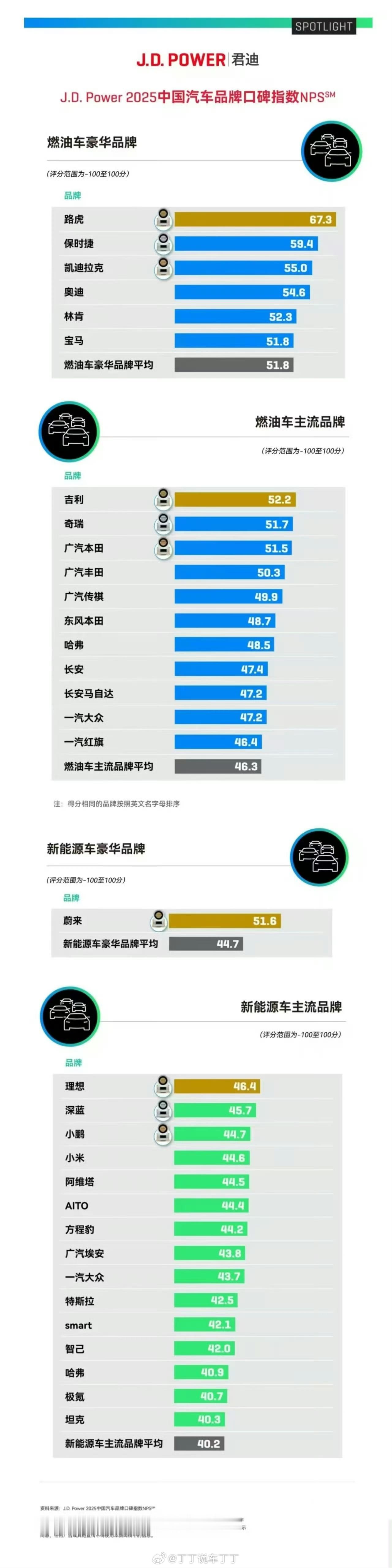 来自J.D.Power 2025中国汽车品牌净推荐值指数: