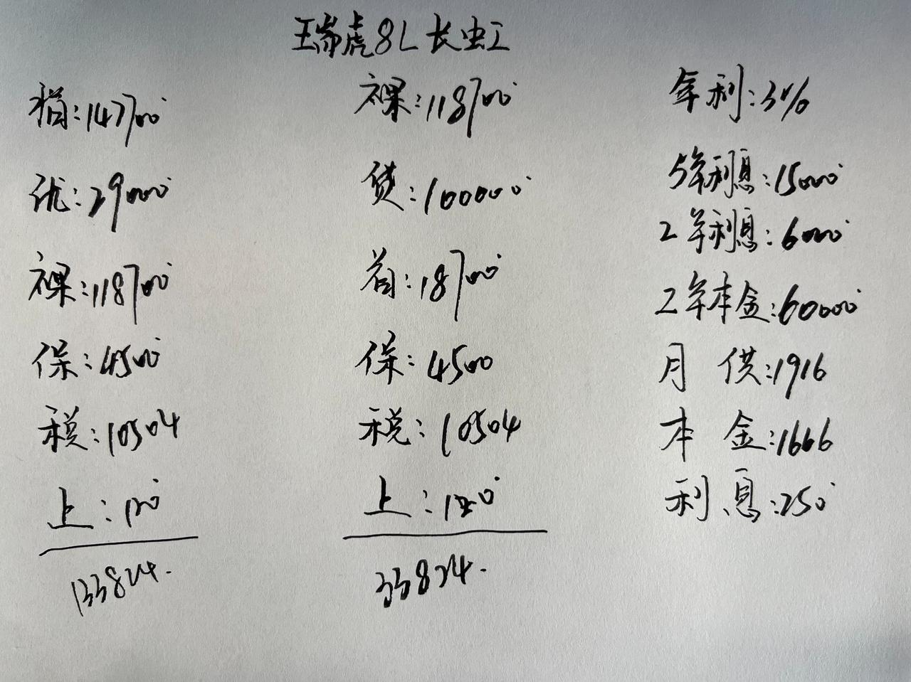 全款13万可入手,瑞虎8L真的太香了! 奇瑞瑞虎8L的定位是中型SUV,在整个瑞虎8家族车型中,瑞虎8L的定位是比较高的,加4000元还可以选7座版本,我身高1.88米,体重88公斤,静态体验过第三排空间,短途应急没有任何问题,家用我觉得是值得考虑的,如果你打算贷款买车,考虑到月供以及后期的生活开支,建议稳定月薪不要低于6000元。 粉丝要购买的这款车型是长虹版,整车的外观设计与中高配车型没有明显区别,前脸造型时尚动感,六边形进气中网面积很大,内部采用了类似满天星的设计风格,提升了整车档次感,左右LED大灯犀利有神,标配了自动大灯、自适应远近光灯、大灯延时关闭等功能,传统雾灯区域使用了黑色装饰,前保下方也使用了黑色装饰提升视觉重心。 接近4.8米的车长从侧面去看确实非常大气,上扬式腰线设计提升了整车运动感,银色行李架采用了贴合式设计,车窗周围使用了一圈镀铬饰条点缀,双色外后视镜集成了转向灯功能,360度全景影像也给配备了,隐藏式门把手可以有效降低风阻,前后轮胎规格均为235/55R19,品牌为佳通,后期更换成本不高,车尾的设计简洁富有层次感,贯穿式LED尾灯夜间点亮之后辨识度很高。 棕色内饰搭配环抱式座舱尽显大气豪华,多色搭配的中控台突出了很强的层次感,10.25英寸全液晶仪表盘不仅可显示信息丰富还可以切换主题模式,真皮多功能方向盘集成了电子式怀挡、智能驾驶辅助按键以及娱乐功能按键,车载智能芯片用的是高通骁龙8155,15.6英寸2.5K中控屏支持导航、手机互联、蓝牙/车载电话、车联网、4G网络、OTA升级等功能,传统挡把位置设计了50W手机无线充电面板,另外,L2级智能驾驶辅助系统也给配备了。 轴距达到了2770毫米,皮质座椅宽大舒适,8个索尼扬声器搭配多色氛围灯能够给车内乘客提供不错的情绪价值,所搭载的2.0T发动机最大功率187kw,最大马力254匹,最大扭矩390牛米,与之匹配的是8挡自动变速箱,WLTC百公里综合油耗仅8L左右(图片来源于网络)。