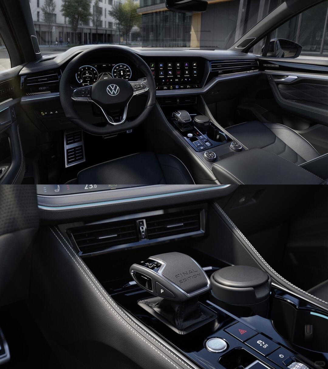 大众途锐推出最终版车型,在后排车窗、迎宾踏板、仪表台等位置的装饰上带有“最终版”