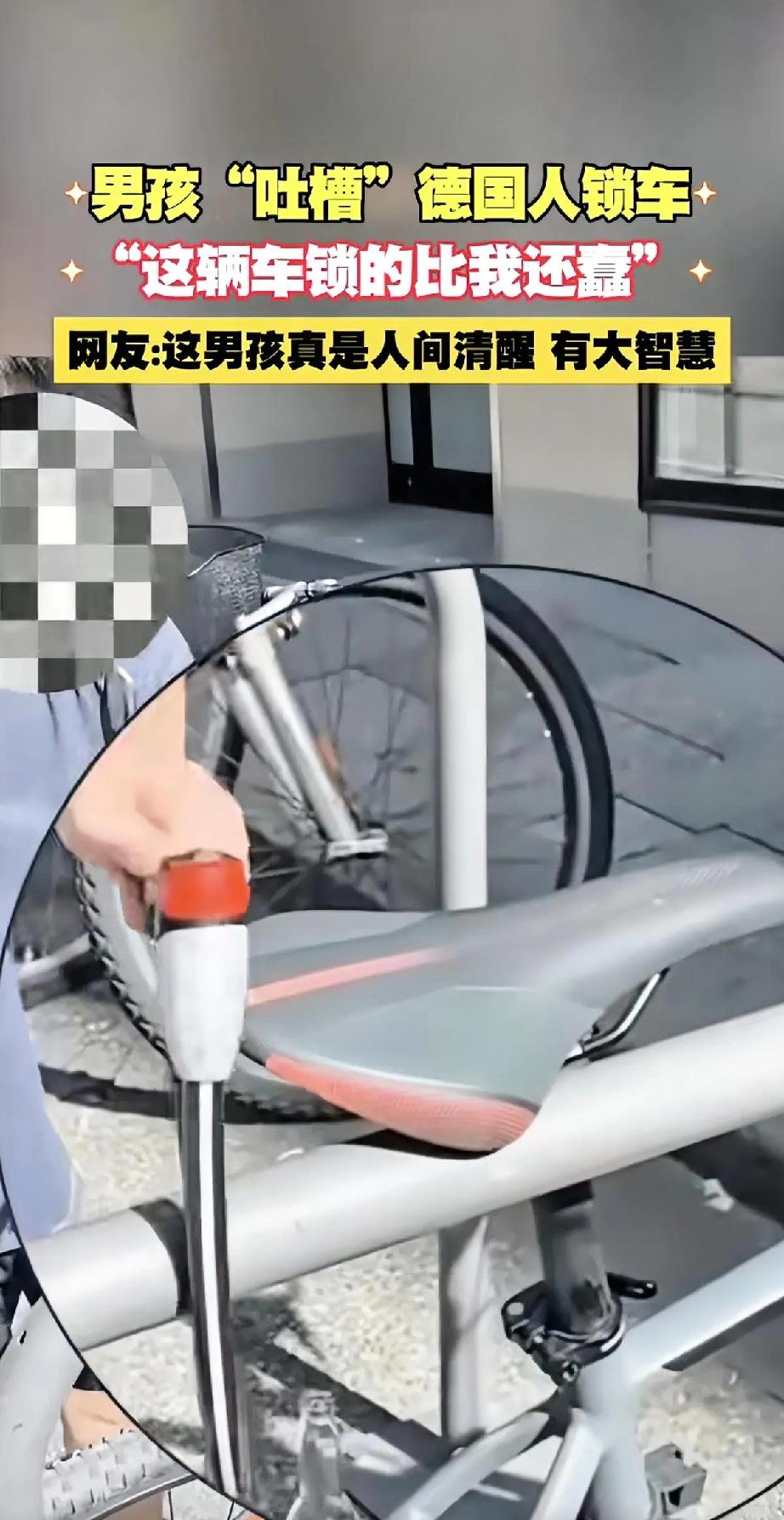 这小男孩太逗了!看到一辆德国自行车锁得严严实实,忍不住吐槽:“这车锁比我还蠢!” 这自行车兄弟用锁把车座和栏杆锁一起,却忘了自行车锁太大了点,用手一翻就相当于没锁。 网友都被他的机智逗乐了,夸他“人间清醒,有大智慧”。 孩子的话虽然天真,却说出了大实话——有时候成人的做法确实挺让人费解。这份童言无忌的幽默和观察力,真是又可爱又犀利!