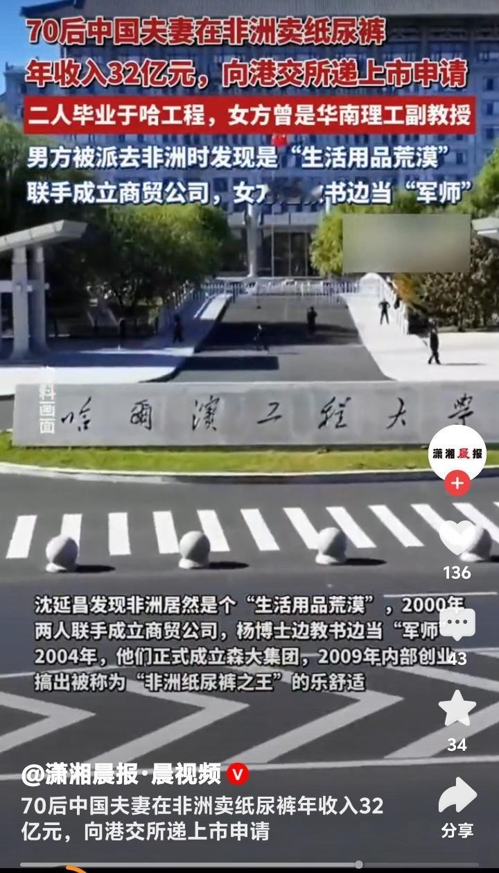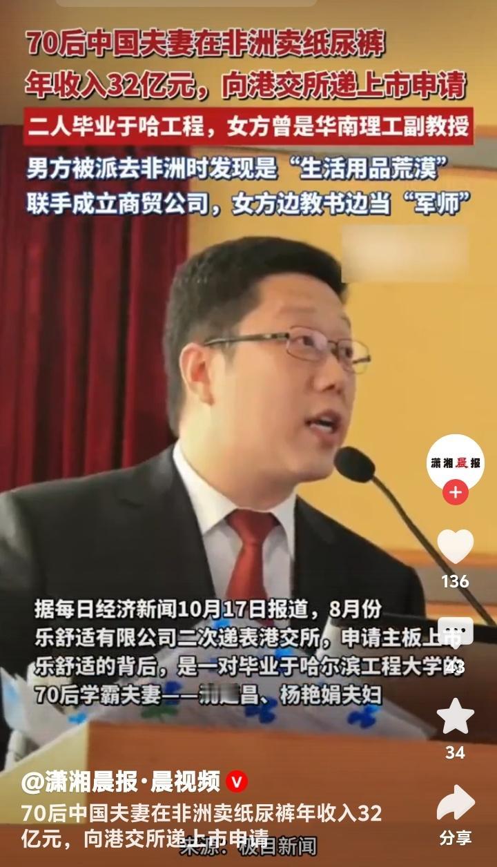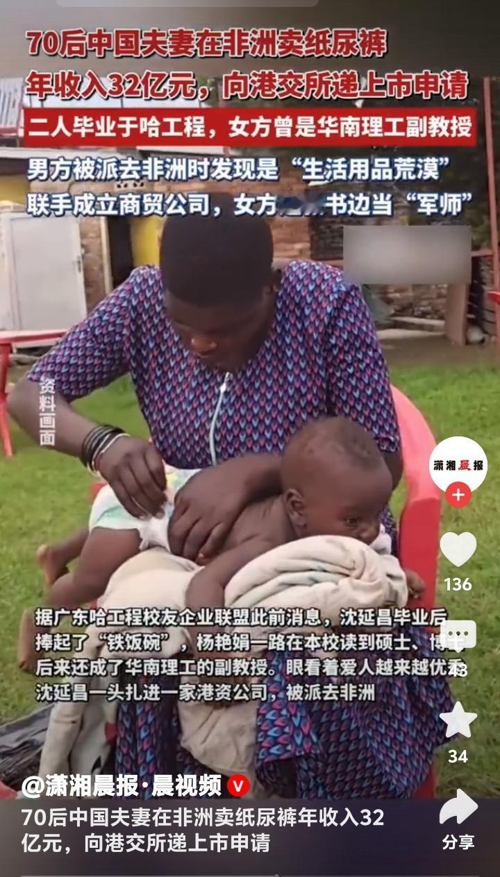 非洲纸尿裤之王逆袭记!70后学霸夫妻弃铁饭碗闯荡非洲,年入32亿秘诀曝光 在遥远的非洲大陆,一对中国夫妻用一包小小的纸尿裤,撬动了亿万市场。沈延昌和杨艳娟,这对毕业于哈尔滨工程大学的70后学霸,原本拥有令人艳羡的“铁饭碗”生活,却因一次偶然的非洲之行,彻底改变了人生轨迹。 当年,沈延昌被派往非洲工作,意外发现这片土地竟是“生活用品荒漠”。当地物资匮乏,尤其是婴儿纸尿裤,几乎全靠进口,价格高昂且供应不稳定。这一发现让他看到了巨大的商机。 与此同时,妻子杨艳娟已是华南理工大学的副教授,学术前途一片光明。但面对丈夫的激情与梦想,她毅然选择成为“幕后军师”,一边教书育人,一边协助丈夫谋划商业版图。 2000年,两人联手成立商贸公司,从零开始摸索非洲市场。起初,他们只是小规模代理中国日用品,但沈延昌敏锐地意识到,纸尿裤或将成为打开非洲家庭的钥匙。 非洲气候炎热,婴儿护理需求迫切,但传统布尿布不仅清洗麻烦,还容易引发健康问题。沈延昌带着团队深入贫民窟调研,发现妈妈们最渴望的是“买得起、用得放心”的纸尿裤。 于是,他们决定自主研发适合非洲市场的产品。杨艳娟凭借科研背景,牵头攻克技术难题,最终推出透气性强、吸水性好且价格亲民的“乐舒适”纸尿裤。 为了打开销路,沈延昌跑遍非洲各国,甚至亲自摆摊推销。一次在肯尼亚的集市上,他现场演示纸尿裤的吸水性,引来围观群众阵阵惊呼。这种“接地气”的营销方式,迅速赢得了当地人的信任。 随着口碑发酵,“乐舒适”逐渐成为非洲妈妈们的首选品牌。如今,其年销售额突破32亿元,覆盖非洲20多个国家,被誉为“非洲纸尿裤之王”。 成功的背后,是夫妻二人十余年的坚守。沈延昌常年在非洲奔波,杨艳娟则在国内统筹研发与供应链。两人相隔万里,却靠着每晚的视频通话,将事业与家庭紧紧维系在一起。 更令人敬佩的是,他们始终坚守“惠及非洲百姓”的初心。公司长期雇佣本地员工,开办工厂带动就业,还定期向贫困地区捐赠母婴用品。这种“共赢”理念,让品牌深深扎根于非洲土壤。 如今,乐舒适公司已向港交所递交上市申请,这对夫妻的创业故事即将翻开新篇章。从学者到企业家,从中国到非洲,他们用行动证明:真正的商机,藏在对人性需求的深刻洞察里。 (来源: 潇湘晨报、每日经济新闻、广东哈工程校友企业联盟) 70后 中国夫妻 非洲 纸尿裤年入32亿 非洲创业 逆袭人生 中国品牌 洵哥传递生意经