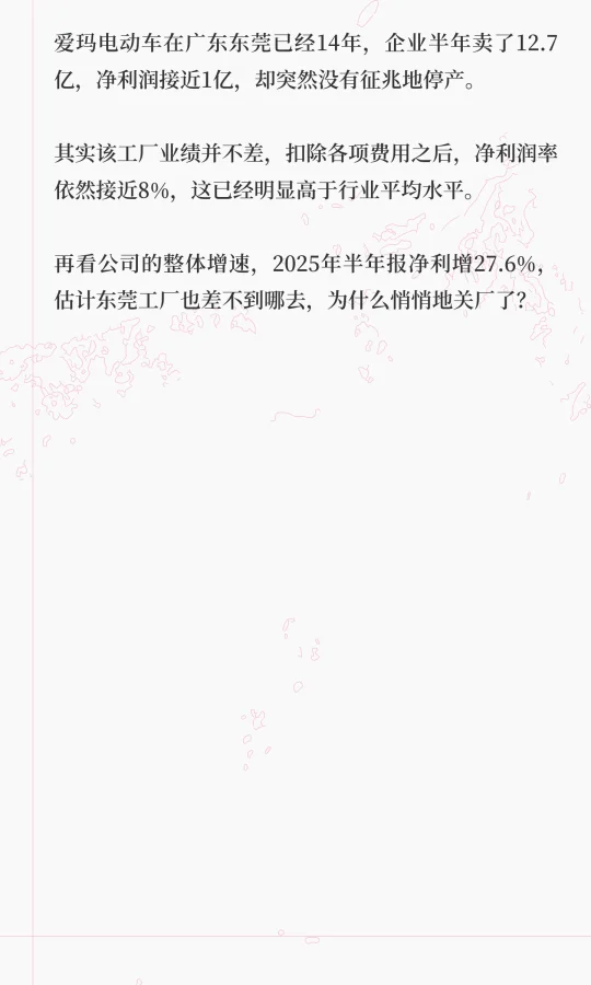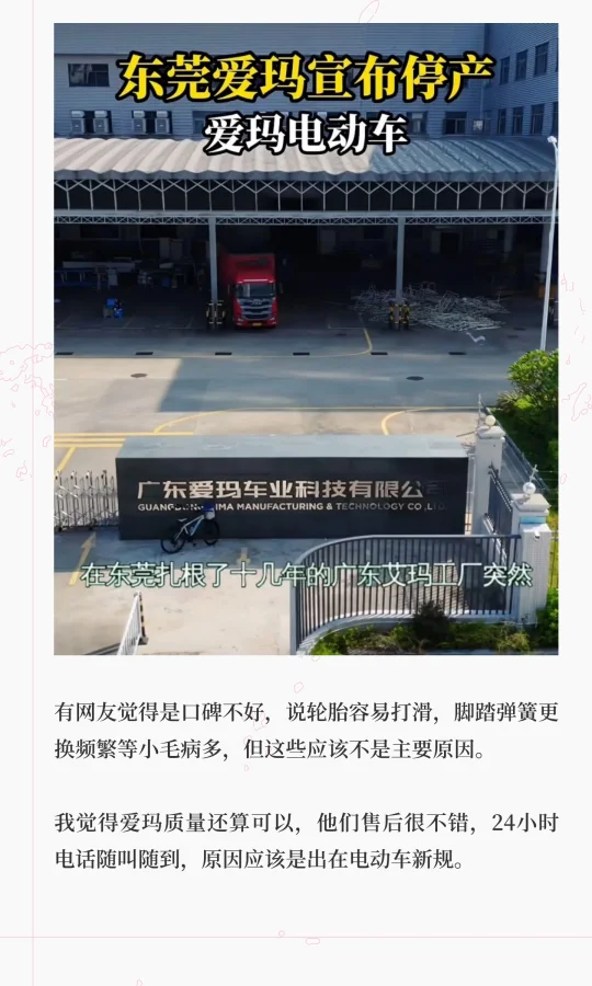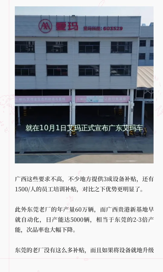 东莞爱玛14年老厂停产,利润率一直超过行业