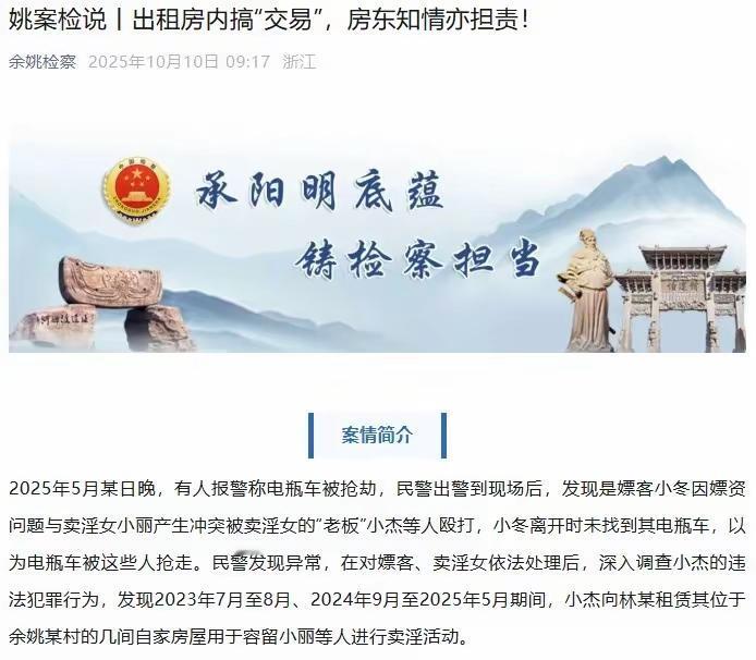 浙江余姚房东林某把自家房出租给小杰,明知对方用房子容留卖淫,不仅不制止,还主动询问是否续租,甚至要求对方“做好日常管理”。最终因一起嫖客报警案,林某的犯罪行为被曝光,被法院以容留卖淫罪判处有期徒刑9个月,罚金1.5万元。本文从案例细节入手,拆解房东“躺赚”背后的法律雷区,教大家如何避开出租房屋的违法陷阱。 一、离谱!嫖客报警牵出“黑房东”,出租自家房竟成犯罪 这事说起来简直像电视剧情节,起因居然是一场“嫖资纠纷”。 2025年5月的一个晚上,浙江余姚民警接到报警,说有人电瓶车被抢。可到了现场一查,哪是什么抢劫?根本是嫖客小冬和卖淫女小丽因为“服务费”吵起来,还被小丽的“老板”小杰等人给揍了。小冬气不过,走的时候没找到自己的电瓶车,就以为被对方抢了,一怒之下报了警。 民警本来是处理治安纠纷,结果越查越不对劲。把小冬、小丽依法处理后,顺着线索深挖小杰的问题,这一挖直接牵出了房东林某。 原来早在2023年7月,林某就把自家村里的几间房租给了小杰。那时候林某就发现不对劲:经常有浓妆艳抹的女人在门口等,还跟不同的男人进进出出。明眼人一看就知道不对劲,林某自己也怀疑小杰是用房子搞“皮肉生意”,但他没管,揣着明白装糊涂,反正房租照收。 结果才一个月,小杰就因为容留卖淫被抓了,林某的房子也没法租了,这事才算暂时告一段落。 可谁能想到,2024年9月,林某在路上碰到刑满释放的小杰,不仅没躲着走,反而主动在微信上问:“要不要再租我的房?”小杰当然求之不得,两人一拍即合,房子又租了出去。 这次林某干脆“摊牌了”——他明明白白知道小杰还在干容留卖淫的勾当,不仅不阻止,还特意叮嘱小杰“做好日常管理”,生怕出岔子影响自己收房租。 直到2025年5月那通“乌龙报警电话”,林某的所作所为彻底暴露。2025年8月,余姚检察院以容留卖淫罪起诉林某,法院最后判了他9个月有期徒刑,还罚了1.5万元。好好的房东不当,非要赚“黑心钱”,最后把自己送进了监狱,简直是得不偿失! 二、法律不饶人!这些“出租房陷阱”,房东千万别踩 很多房东觉得“我把房子租出去,收房租天经地义,租客干什么跟我没关系”,但林某的案例告诉我们:大错特错!一旦租客用你的房子干违法的事,房东知情不报甚至主动配合,很可能一起犯罪。 1. 林某到底错在哪?法律条文说得明明白白 根据《中华人民共和国刑法》第三百五十九条规定:容留他人卖淫的,处五年以下有期徒刑、拘役或者管制,并处罚金;情节严重的,处五年以上有期徒刑,并处罚金。 这里的“容留”,不只是“提供场地”这么简单。像林某这样,一开始怀疑租客卖淫却“不深究”,后来明知对方犯罪还主动续租,甚至要求“做好管理”,已经构成了“故意容留”。哪怕他没直接参与卖淫活动,只要为违法犯罪提供了场地,并且主观上是明知的,就已经触犯了刑法。 检察官在办案时也明确说:林某不是“无辜房东”,他第一次出租时就有怀疑,第二次更是明知故犯,甚至主动联系租客续租,还对“违法活动”提管理要求,主观恶意很明显,完全符合容留卖淫罪的构成要件。 2. 这些“出租房雷区”,90%的房东都可能忽略 除了容留卖淫,房东出租房子时,这些行为也可能违法,一定要警惕: 明知租客搞传销/赌博,还继续出租:有人租房子用来开“传销窝点”,或者组织赌博,房东发现后不制止、不举报,反而继续收房租,可能构成“协助组织传销罪”或“开设赌场罪共犯”。 租客用房子制假售假,房东知情不报:比如有人租民房造假冒名牌、假食品,房东知道后不管不顾,可能被认定为“生产、销售伪劣产品罪共犯”。 不登记租客信息,出事要担责:根据《治安管理处罚法》,房东必须登记租客的姓名、身份证件等信息,还得向公安机关备案。如果不登记,租客出事,房东可能被罚款,甚至拘留。 3. 房东如何避坑?记住这3点准没错 别以为出租房子是“躺赚”,做好这几点才能安心收房租: 1. 租客信息必须登:一定要看租客的身份证,登记姓名、身份证号、联系方式,最好复印留存,按规定向派出所备案,别图省事不登记。 2. 定期看房多留意:租出去后别当“甩手掌柜”,定期去房子附近看看,或者跟邻居打个招呼,留意有没有异常情况(比如频繁换租客、陌生人进出多、半夜吵闹等)。 3. 发现异常立刻退:一旦怀疑租客用房子干违法的事,马上跟租客沟通,要求停止;如果对方不听,立刻解除租赁合同,必要时直接报警,别抱有侥幸心理。 最后想问大家:你觉得林某被判9个月冤吗?如果你是房东,遇到租客有异常情况,会怎么做?欢迎在评论区聊聊你的看法!
