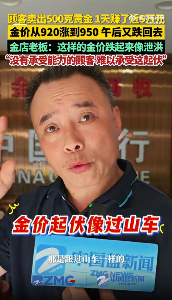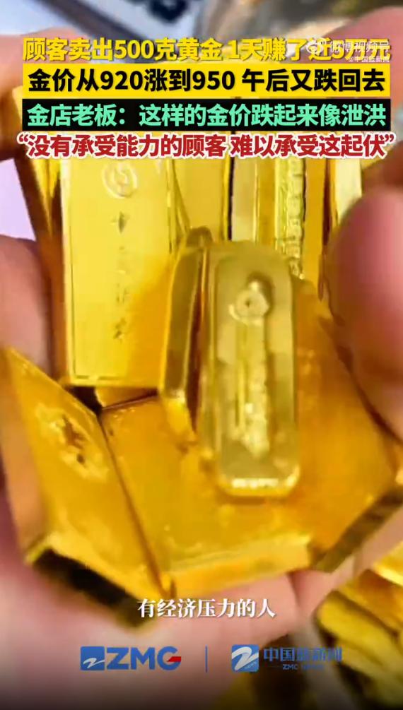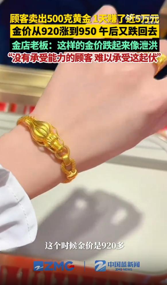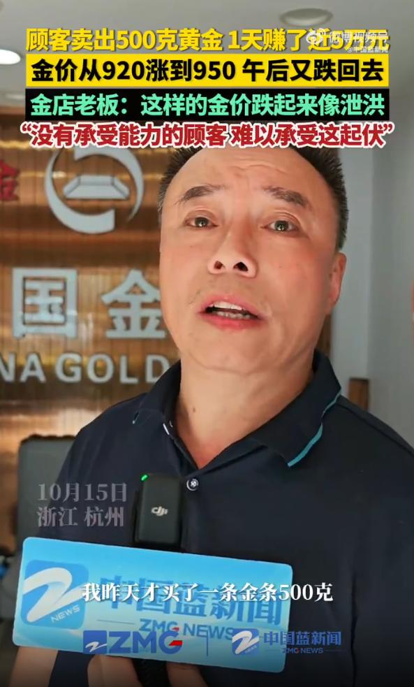 浙江杭州,一顾客为了赚块钱,直接买了500克黄金,第二天一看涨了就卖了,仅仅1天时间,就赚了近5万元,但是,金店老板也说了,这个金价10月14日上午920,之后涨到950,午后又跌回去920。所以,金店这样的金价跌起来像泄洪,没承受能力的,难以承受这起伏! 10月14号这天,杭州黄金市场出现了戏剧性的一幕,早上开盘时金价还在920元每克,到了上午11点左右,价格一路飙升到950元每克,涨幅超过3%,可好景不长下午2点过后,金价像坐滑梯一样直接跌回920元,把上午的涨幅全部吐了出来。 就在这短短几个小时的波动中,有位顾客凭借精准的操作赚了近5万元,这位顾客早在金价低位时就买入了500克黄金,一直按兵不动,14号上午看到价格冲到950元的高点,果断出手,第二天办完手续,扣除成本后净赚近5万元。 杭州某金店的老板透露,这种极端行情在今年并不少见,金价波动越来越像股票了,上午还在庆祝赚钱,下午可能就要哭了,老板说很多顾客看到别人赚钱就眼红,结果自己一买就被套牢。 据了解,今年以来国际金价受多重因素影响波动剧烈,美联储的货币政策、中东地缘局势、全球经济不确定性等因素交织,让金价走势变得难以预测,特别是10月份以来,金价日内波动幅度经常超过2%,这在以往是很少见的。 杭州黄金市场的一位资深从业者分析,那位赚钱的顾客之所以能成功,关键在于提前布局和果断止盈,很多人都是追涨杀跌,看到涨了才买,结果买在高点,而这位顾客是在低位建仓,高位果断卖出,这需要很强的定力。 相比之下购买黄金亏钱的案例更多,有位大妈看到邻居炒金赚了钱,也跟风买了200克,结果刚买完就遇到金价下跌,她连续三天往金店跑,每次都问价格涨了没有,最后因为急用钱只能亏损2000多元割肉离场,临走时她懊恼地说:早知道这么折腾人,还不如存银行。 还有更惨的,一位中年男子在金价945元时买入300克,想着还能涨到960元再卖,结果当天下午就跌到920元,他舍不得止损一直拿着,后来金价继续下跌到910元,最终亏损超过1万元才忍痛卖出。 业内人士提醒,黄金投资需要具备一定的专业知识和风险承受能力,短期炒作黄金本质上是在博弈,需要对国际经济形势、货币政策、地缘政治等有深入了解,普通投资者如果只是跟风操作,很容易成为韭菜。 从长期来看黄金确实具有保值功能,但这需要以年为单位来衡量,而不是以天计算,如果把黄金当作短期投机工具,风险不亚于炒股票。 杭州这波行情也反映出当前黄金市场的新特点,随着投资渠道的多元化,越来越多的普通人参与到黄金交易中,但很多人缺乏必要的投资知识,只是看到别人赚钱就盲目跟进,结果往往事与愿违,所以提醒大家:投资有风险,入市需谨慎。 麻烦看官老爷们右上角点击一下“关注”,既方便您进行讨论和分享,又能给您带来不一样的参与感,感谢您的支持!