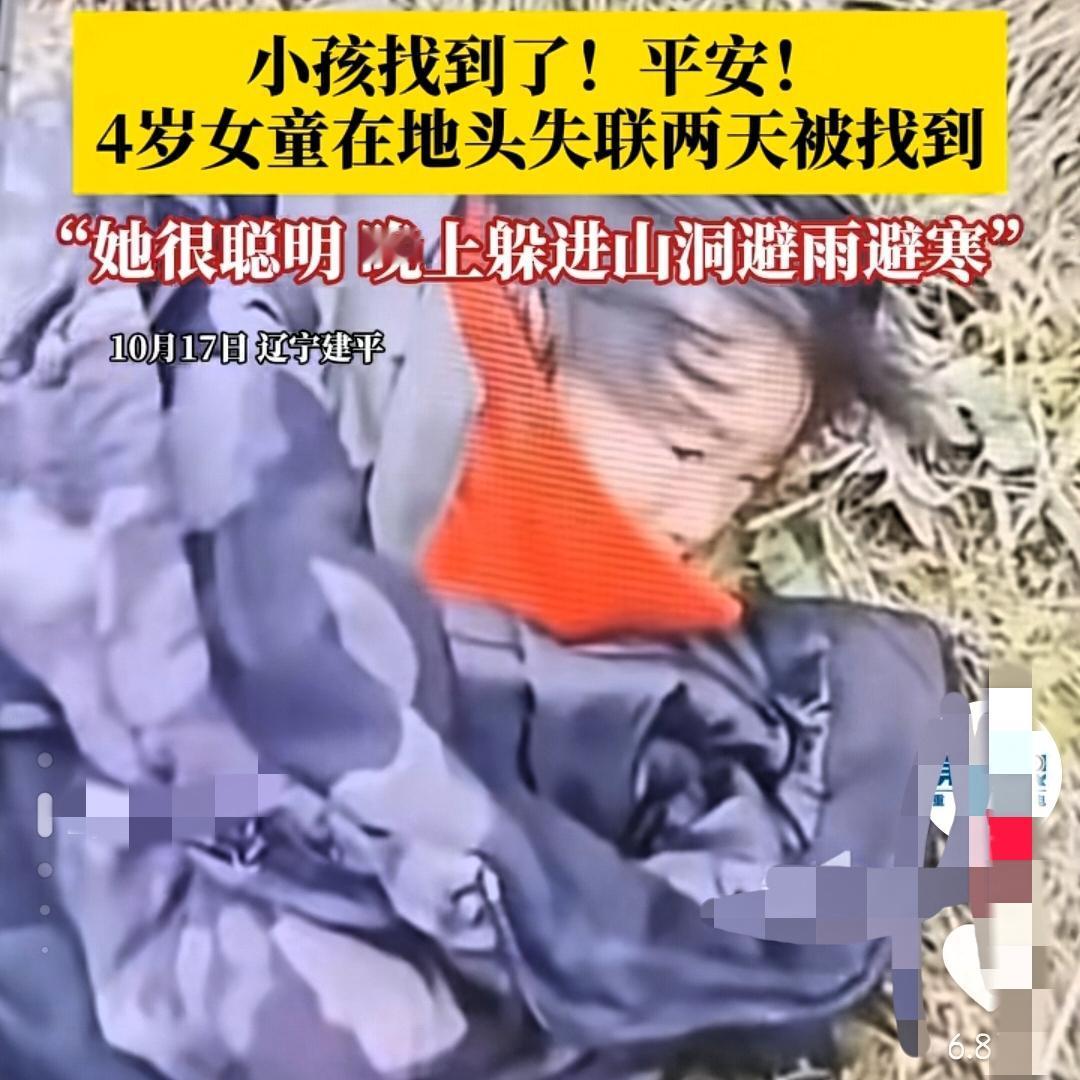 太好啦!失联的4岁小女孩已平安找到! 昨晚下雨时,她还知道躲进山洞避险,熬到了大家找到她。 目前身体健健康康,暂无任何大碍。 这场地毯式的搜索,牵动了无数人的心,在现场的,网络上的,都时时刻刻关注着,搜寻,转发,都在尽着自己的一份力。 这再次证明,这个世界上,始终是好人多。愿小女孩一生平安,愿大家一生好运。中国国富民强。2岁半失踪女童 失联
