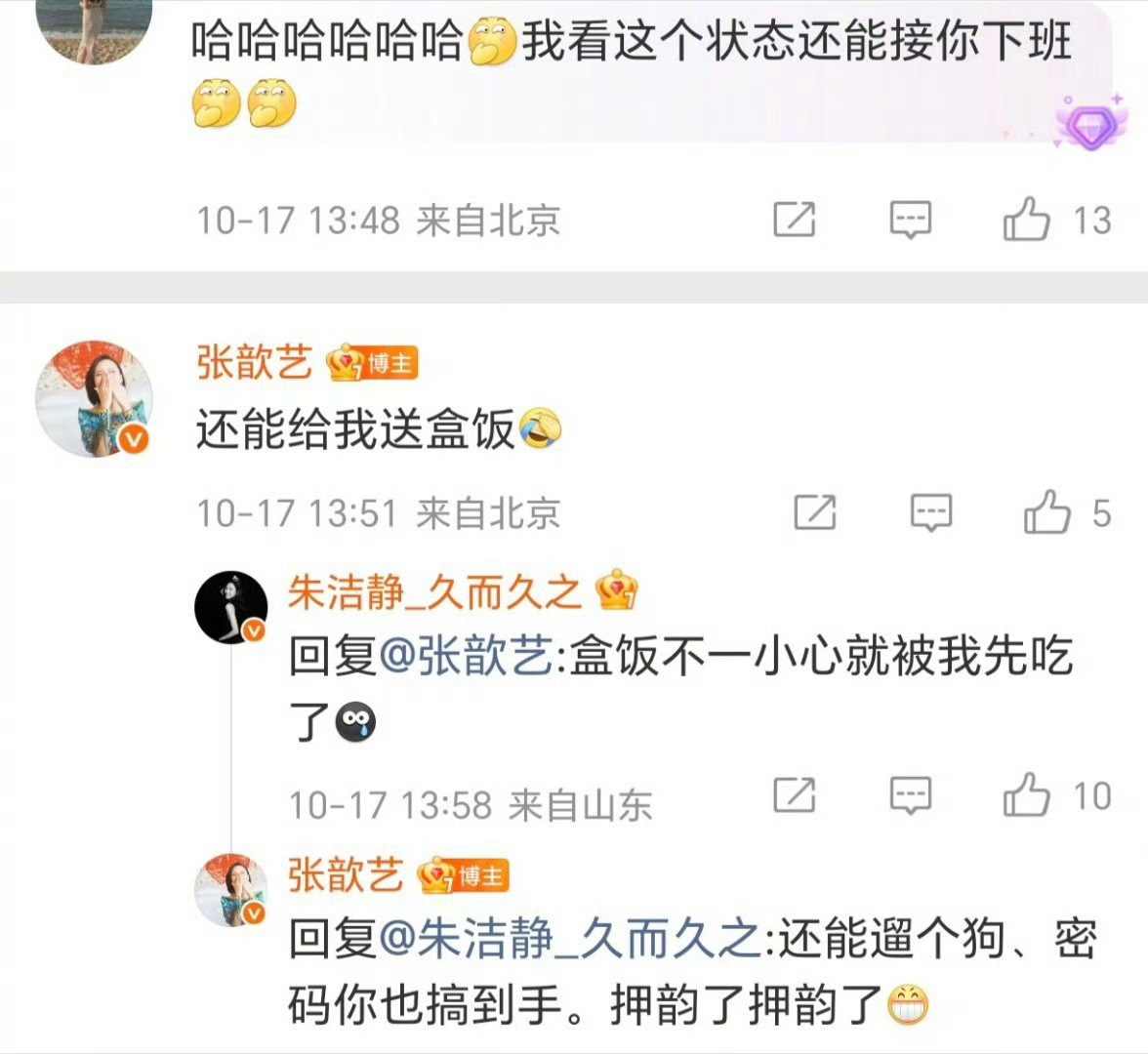 张歆艺被朱洁静送走了哈哈哈哈哈哈朱洁静就这么在张歆艺家把张歆艺送走了,连吃带拿