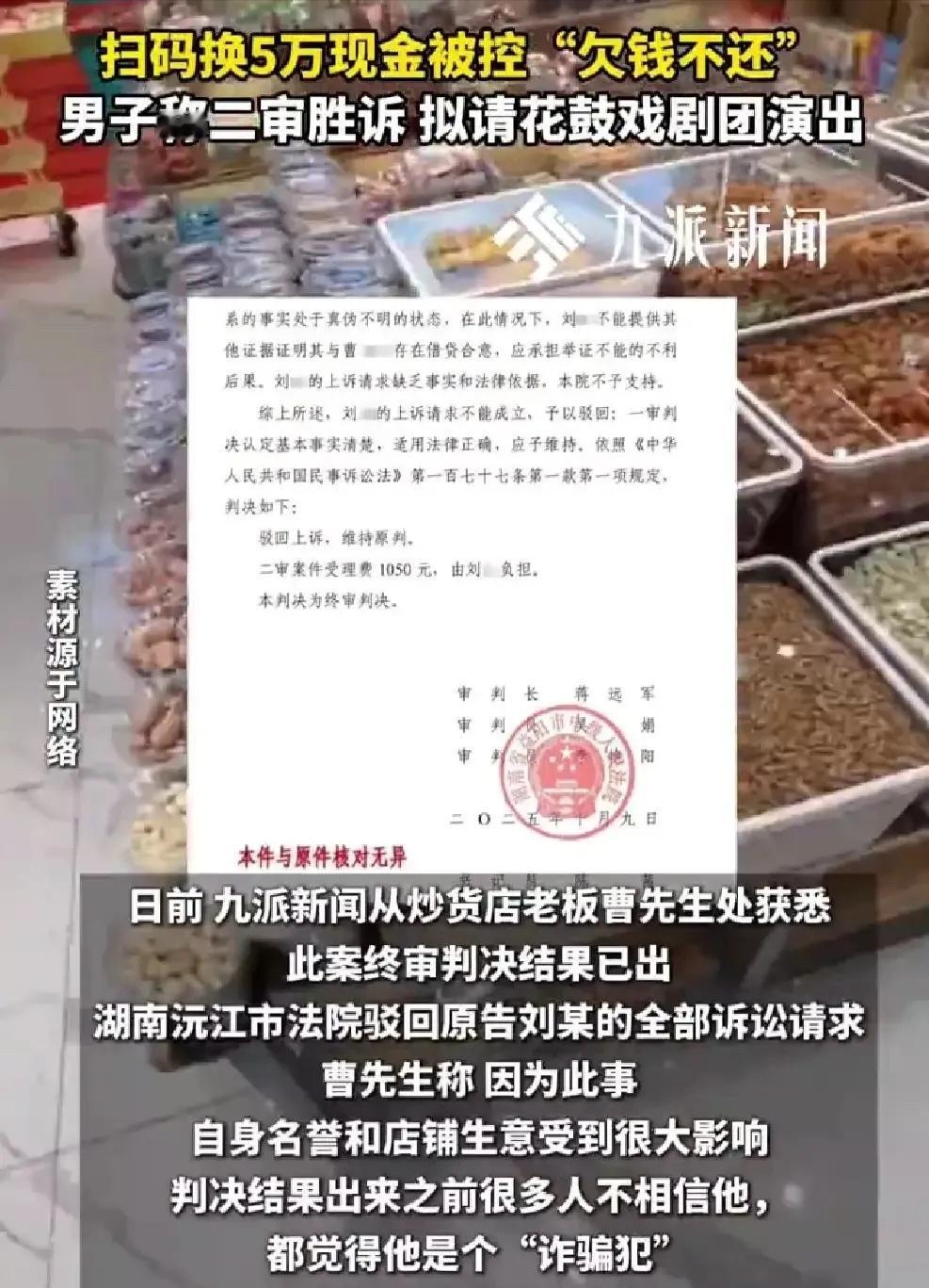 湖南沅江18岁炒货店老板曹某,好心帮熟客刘某兑换5万元现金,一个多月后竟收到法院