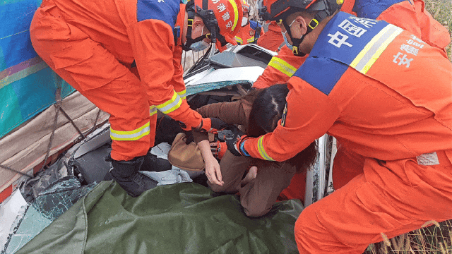 高速上的意外总是来得猝不及防。近日安徽宣城高速上,一辆大货车突然撞向白色轿车,3名乘客被困。轿车被大货车和护栏“夹击”,车身严重变形,车门都打不开。消防员徒手扒开前挡风玻璃救出驾驶员,又从前挡风玻璃处协助乘客撤离,还从车辆后侧破拆救出行动不便的被困者。原来,是大货车行驶中爆胎方向失控才酿成事故。 再看看贵州,近年交通事故也频发,像2022年抗疫转运大巴侧翻、2023年中巴夹击事故等。大家开车可得规范行驶,远离大车,安全第一啊!